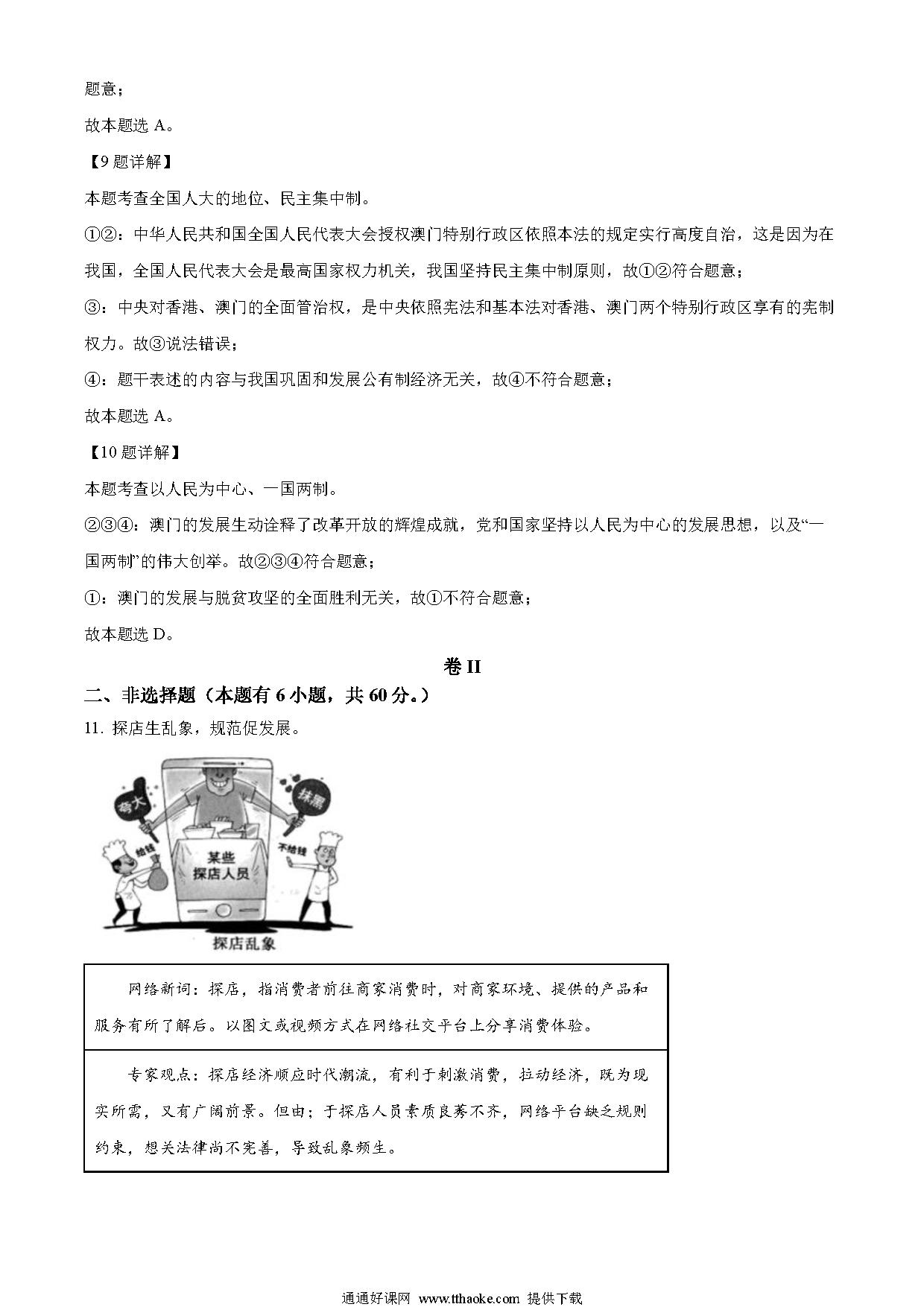 2023年浙江省台州市中考道德与法治真题(解析版)