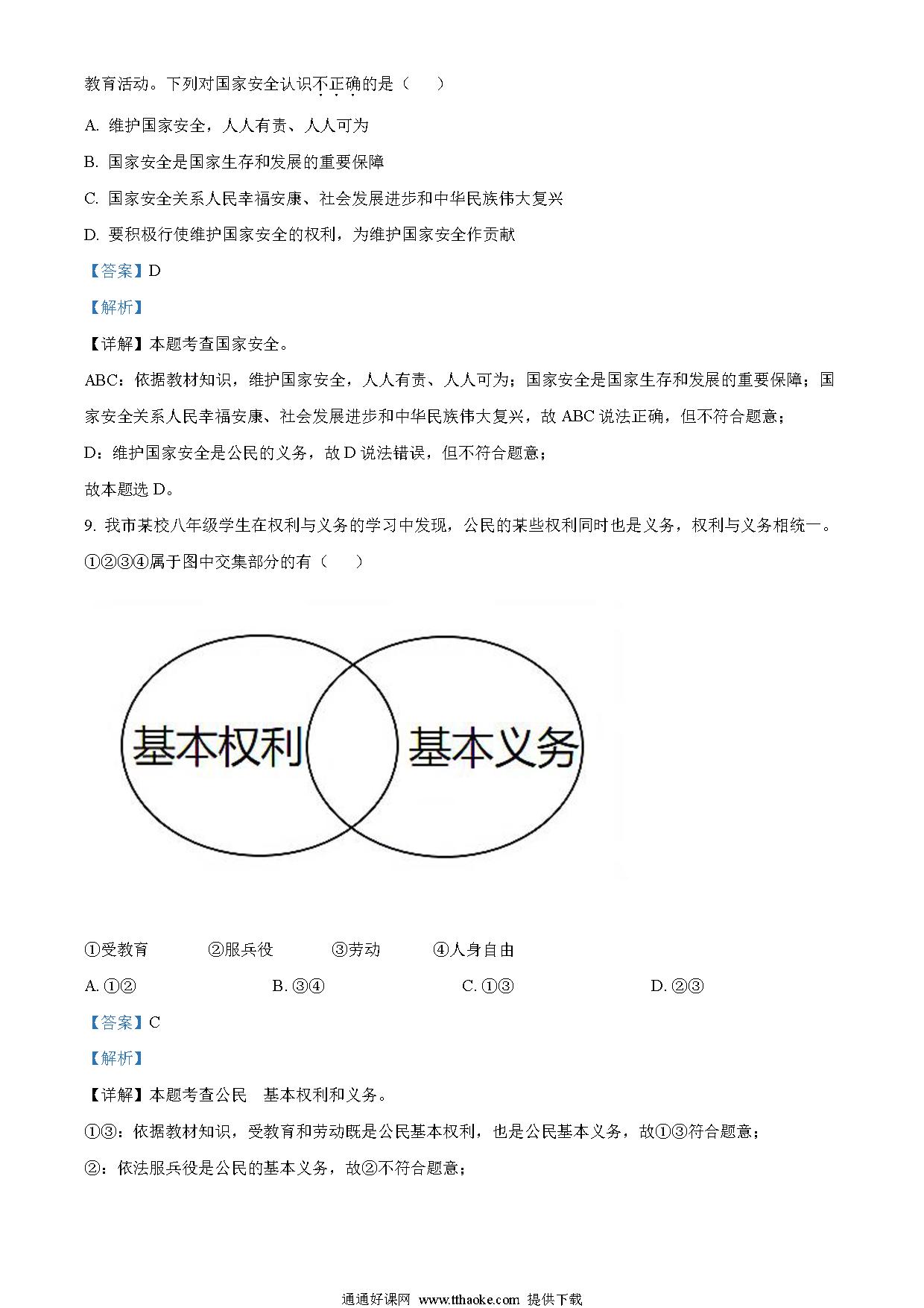 2023年浙江省台州市中考道德与法治真题(解析版)