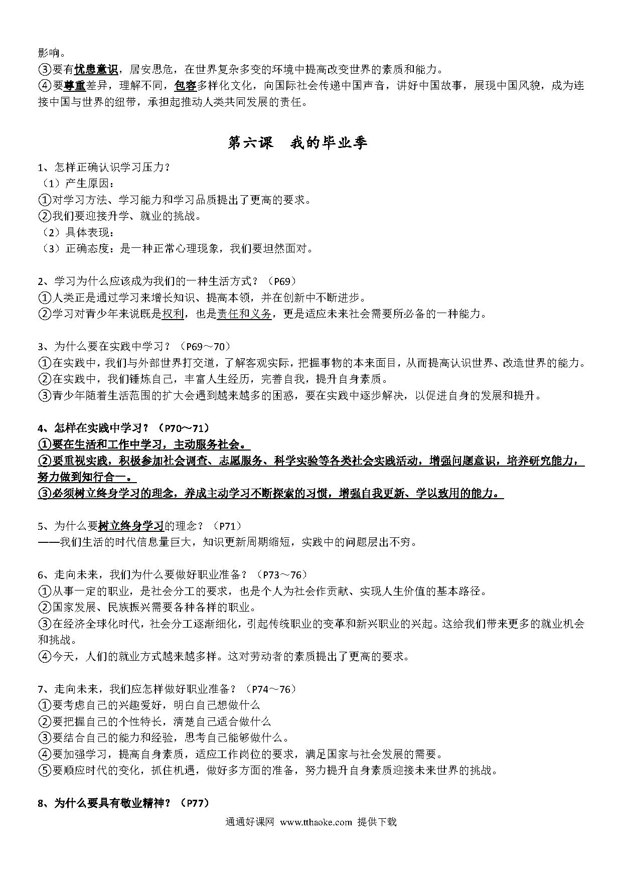 2019年部编版九年级中考道德与法治知识要点.pdf