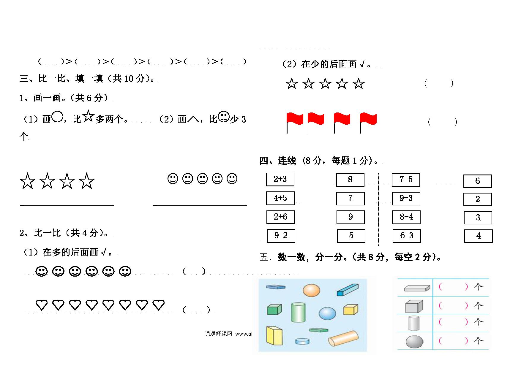 人教版一年级数学上学期期中竞赛试卷免费下载打印(附答案)