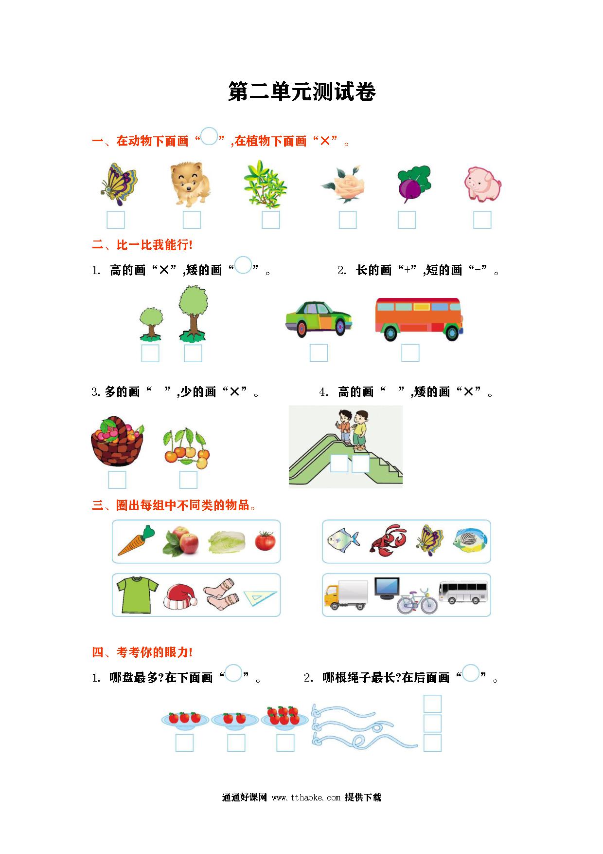 2016年青岛版五年制一年级数学上册第二单元测试卷及答案.pdf