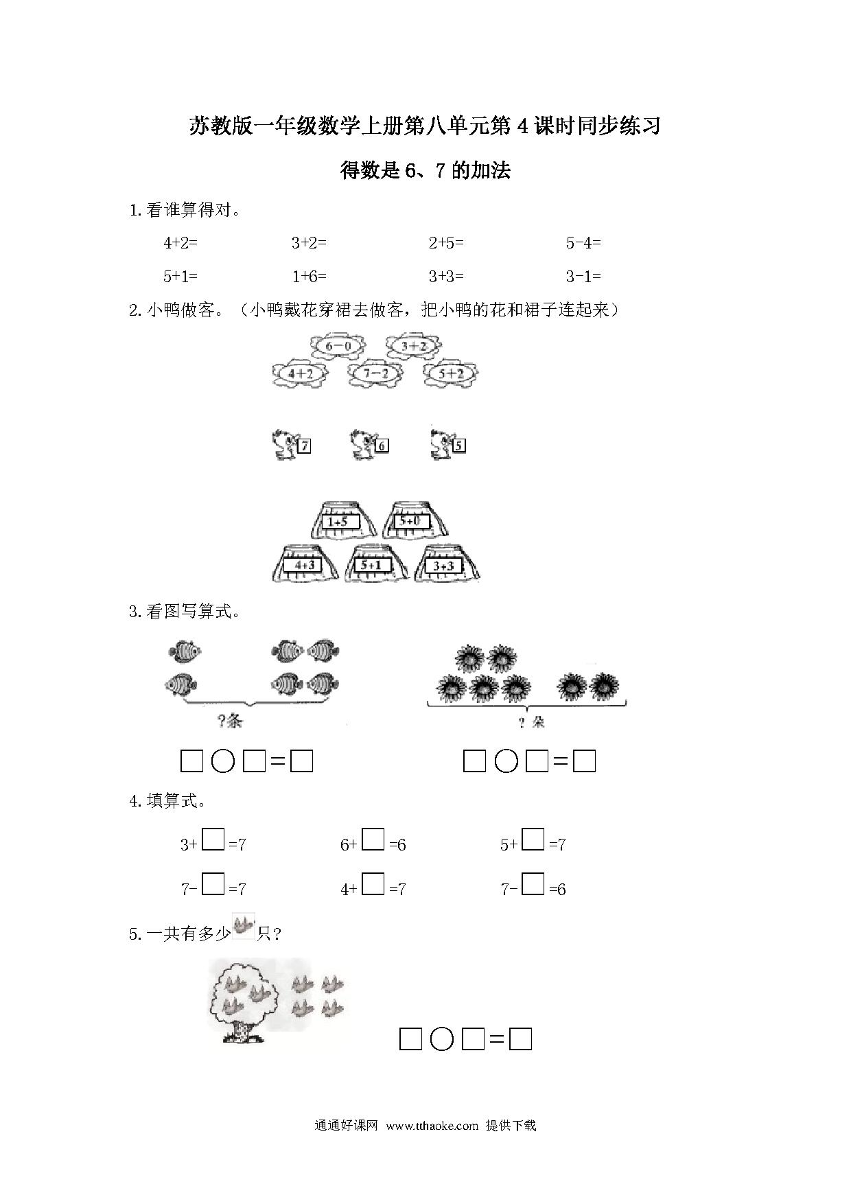 一年级数学上册第八单元得数是6、7的加法同步练习题及答案.pdf