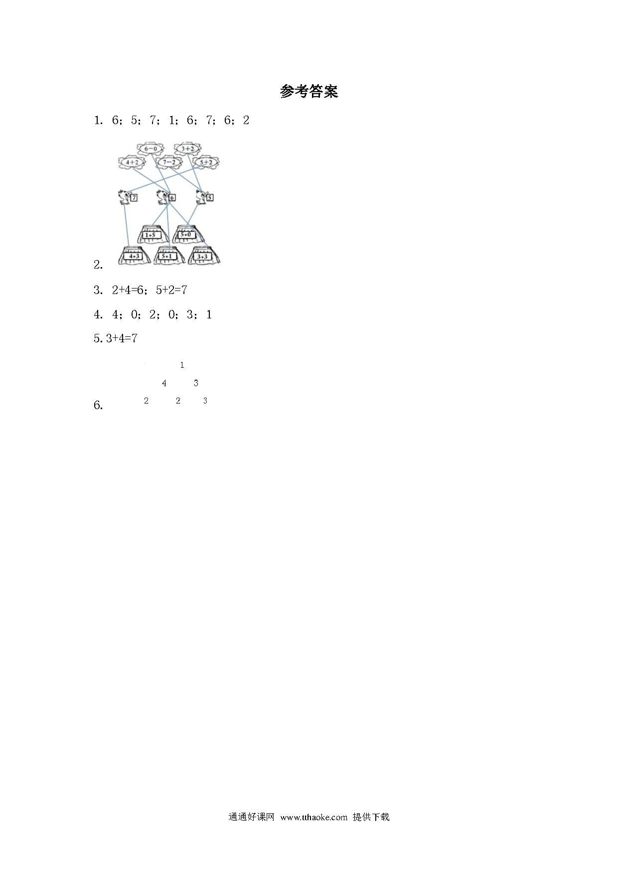 一年级数学上册第八单元得数是6、7的加法同步练习题及答案