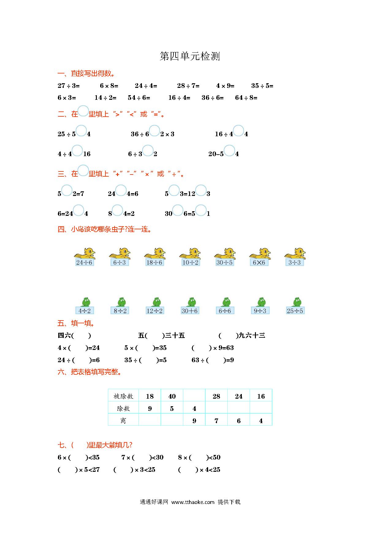 2024学年人教版二年级数学下册期末冲刺卷免费打印下载(附答案)