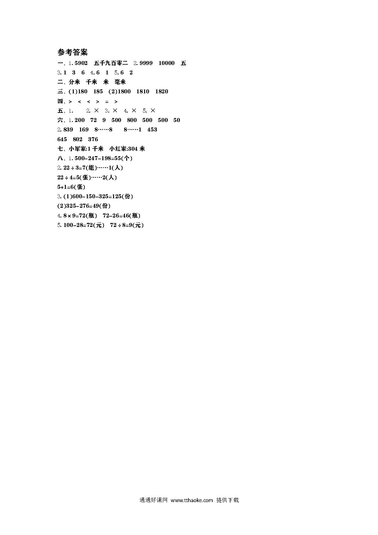 2022年人教版二年级数学上册第一单元测试题附答案(可下载打印)