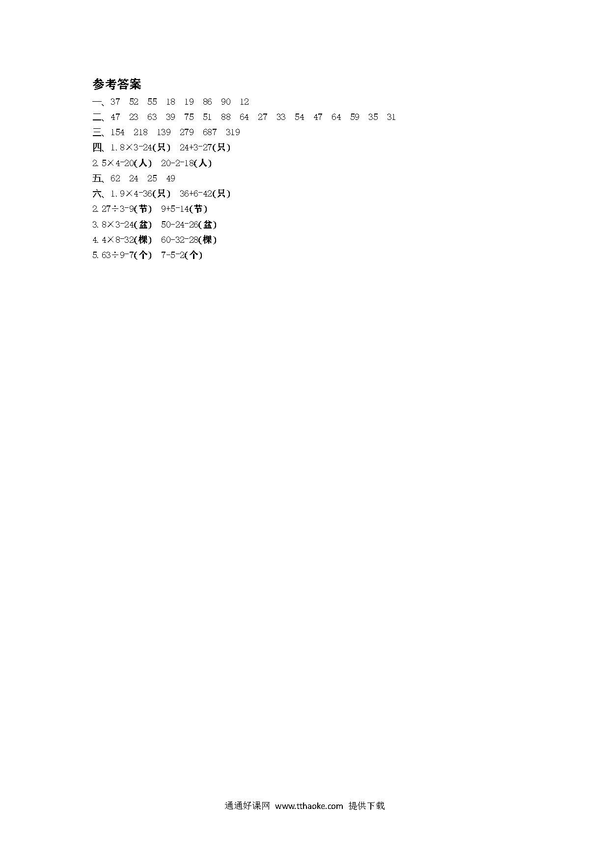 2024学年人教版二年级数学下册期末冲刺卷免费打印下载(附答案)