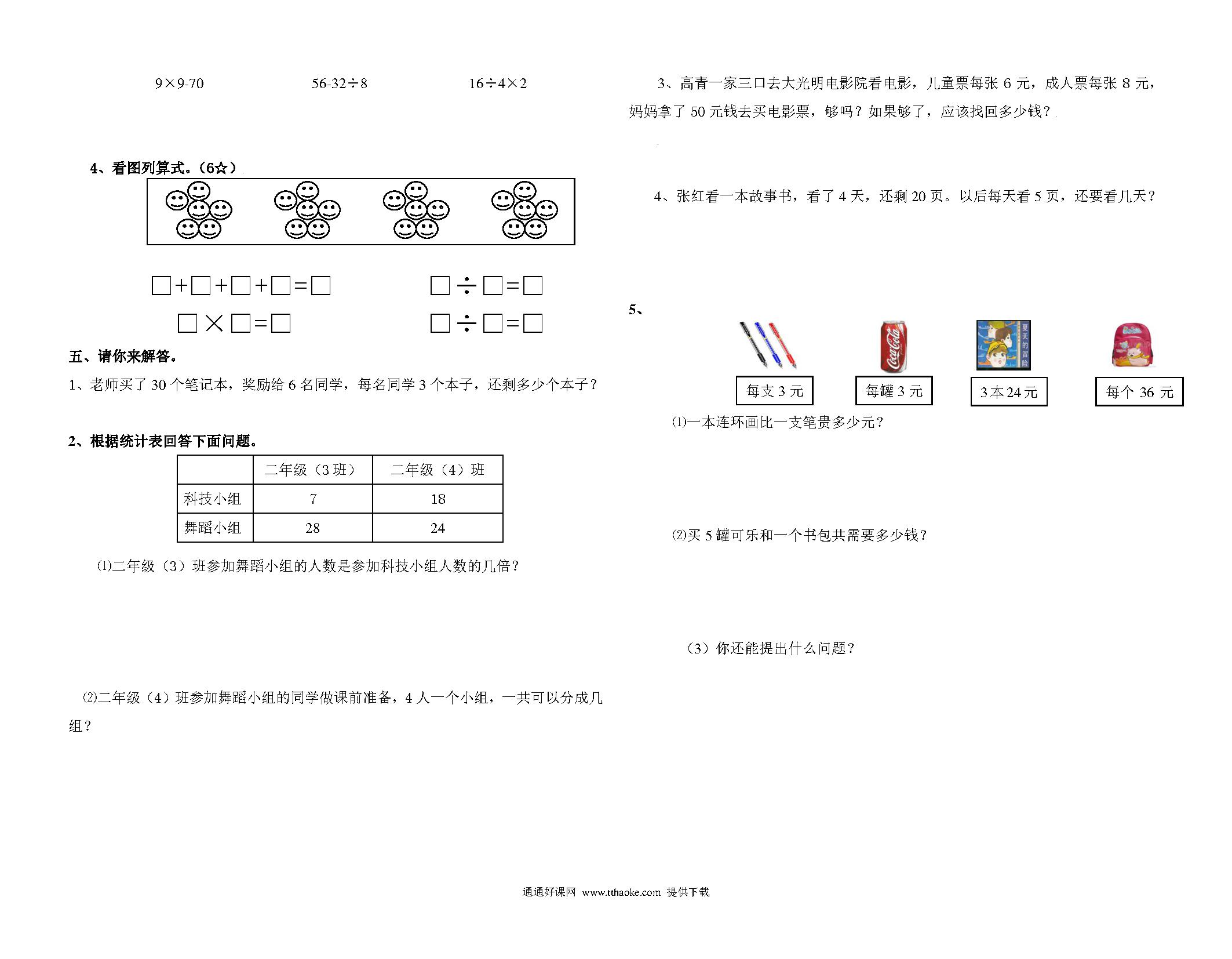 2024人教版二年级数学下册期末考试卷免费下载打印(附答案)