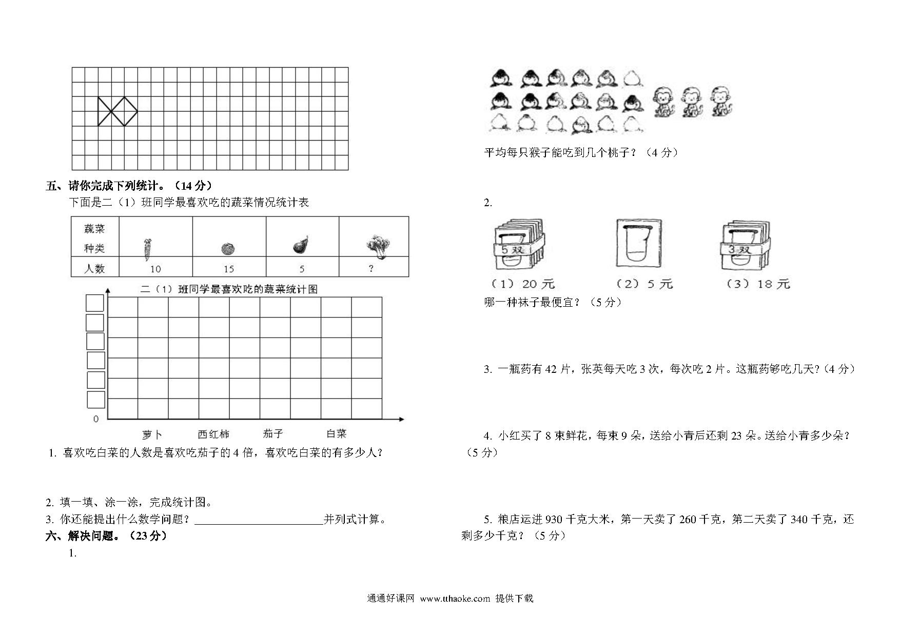 2024人教版二年级数学下册期末考试卷免费下载打印(附答案)