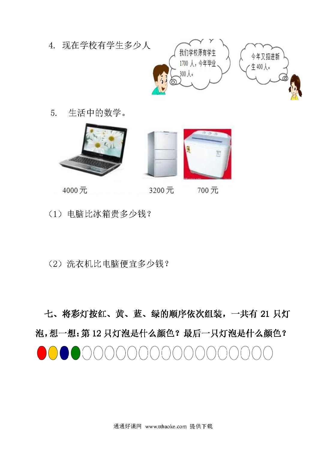 2024人教版二年级数学下册期末考试卷免费下载打印(附答案)