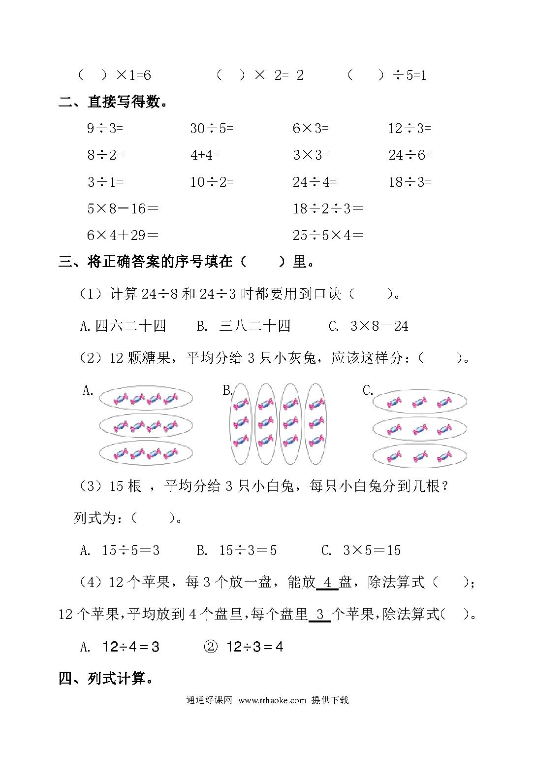 2024学年人教版二年级数学下册期末冲刺卷免费打印下载(附答案)