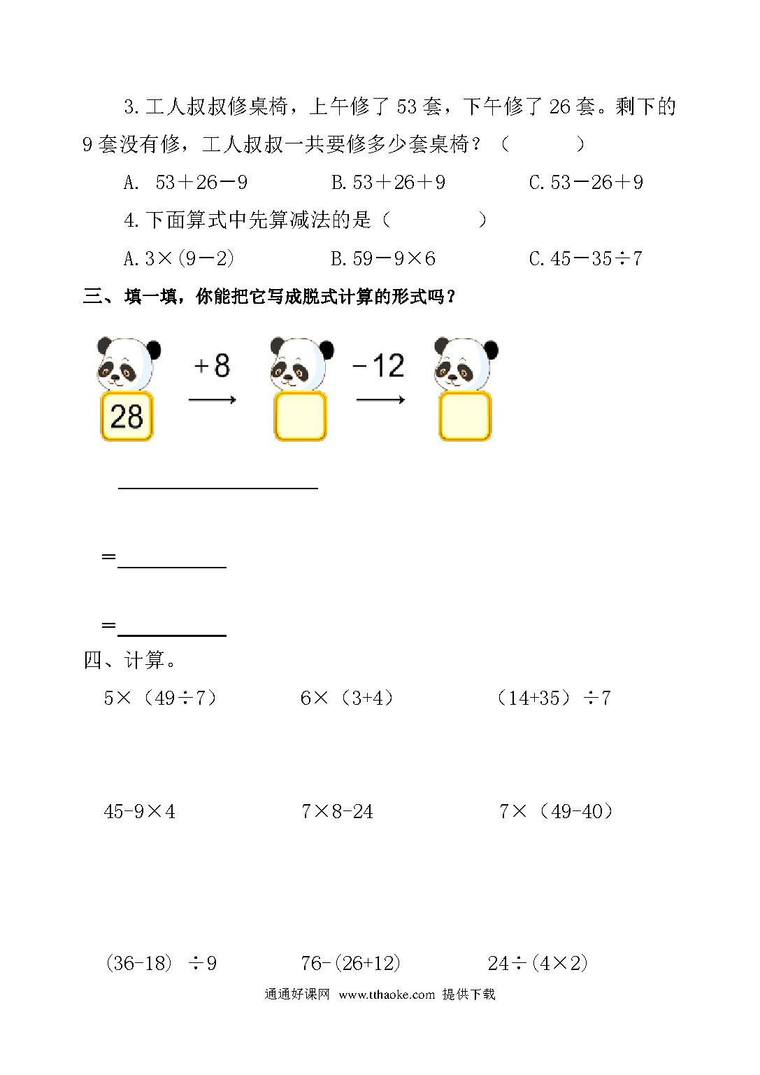 2024人教版二年级数学下册期末考试卷免费下载打印(附答案)