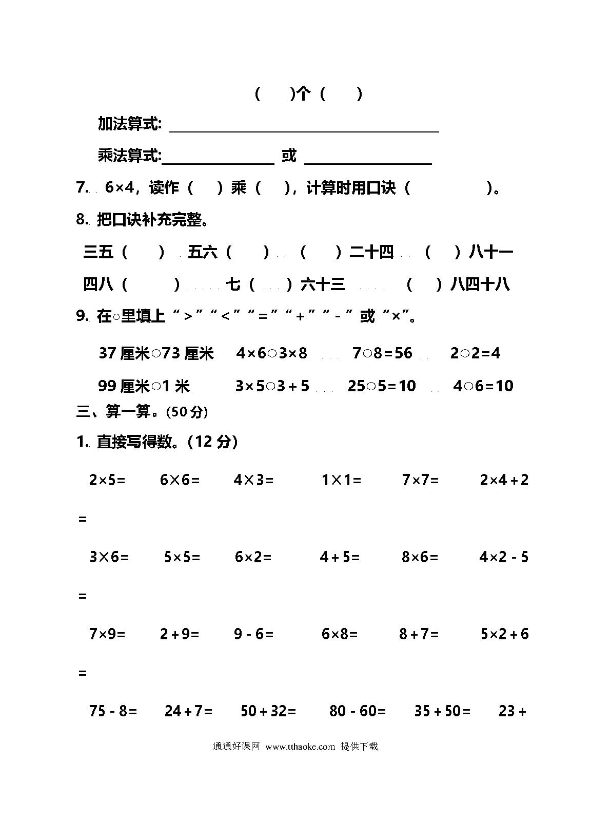 2024人教版二年级数学下册期末考试卷免费下载打印(附答案)