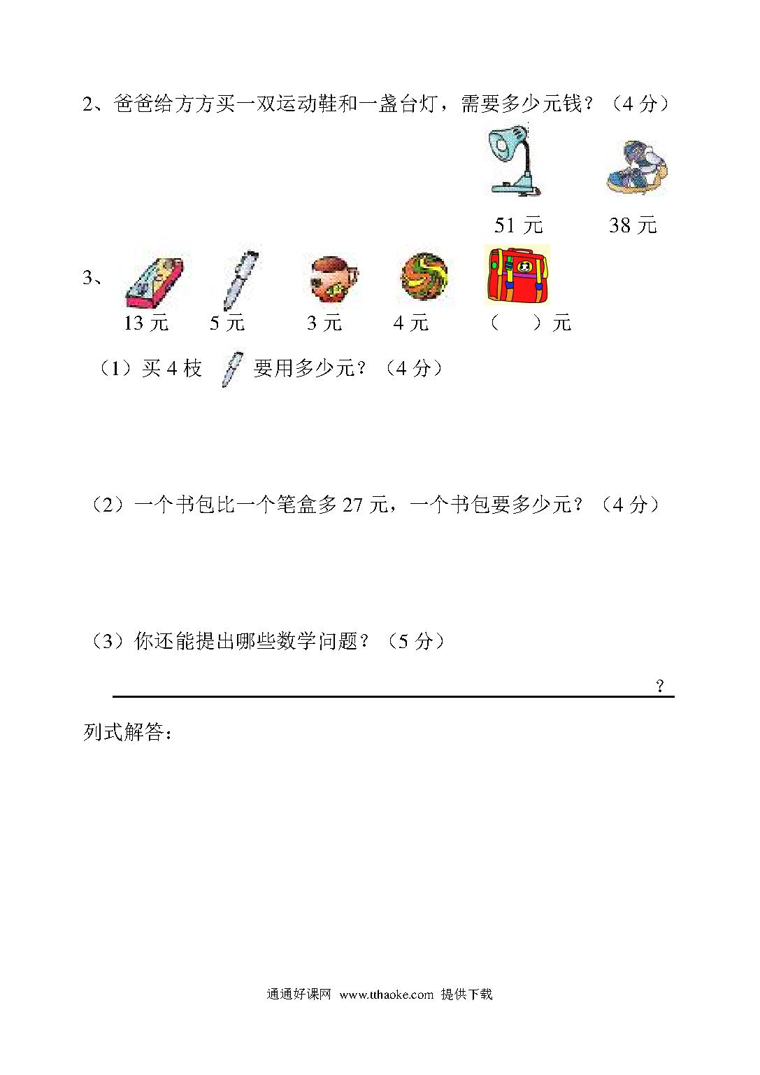 2024人教版二年级数学下册期末考试卷免费下载打印(附答案)