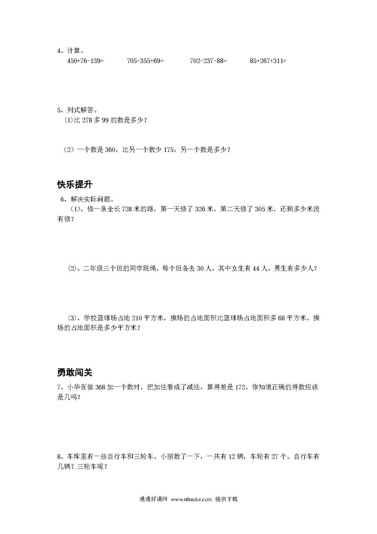 2015年二年级数学下册期末复习练习(四)