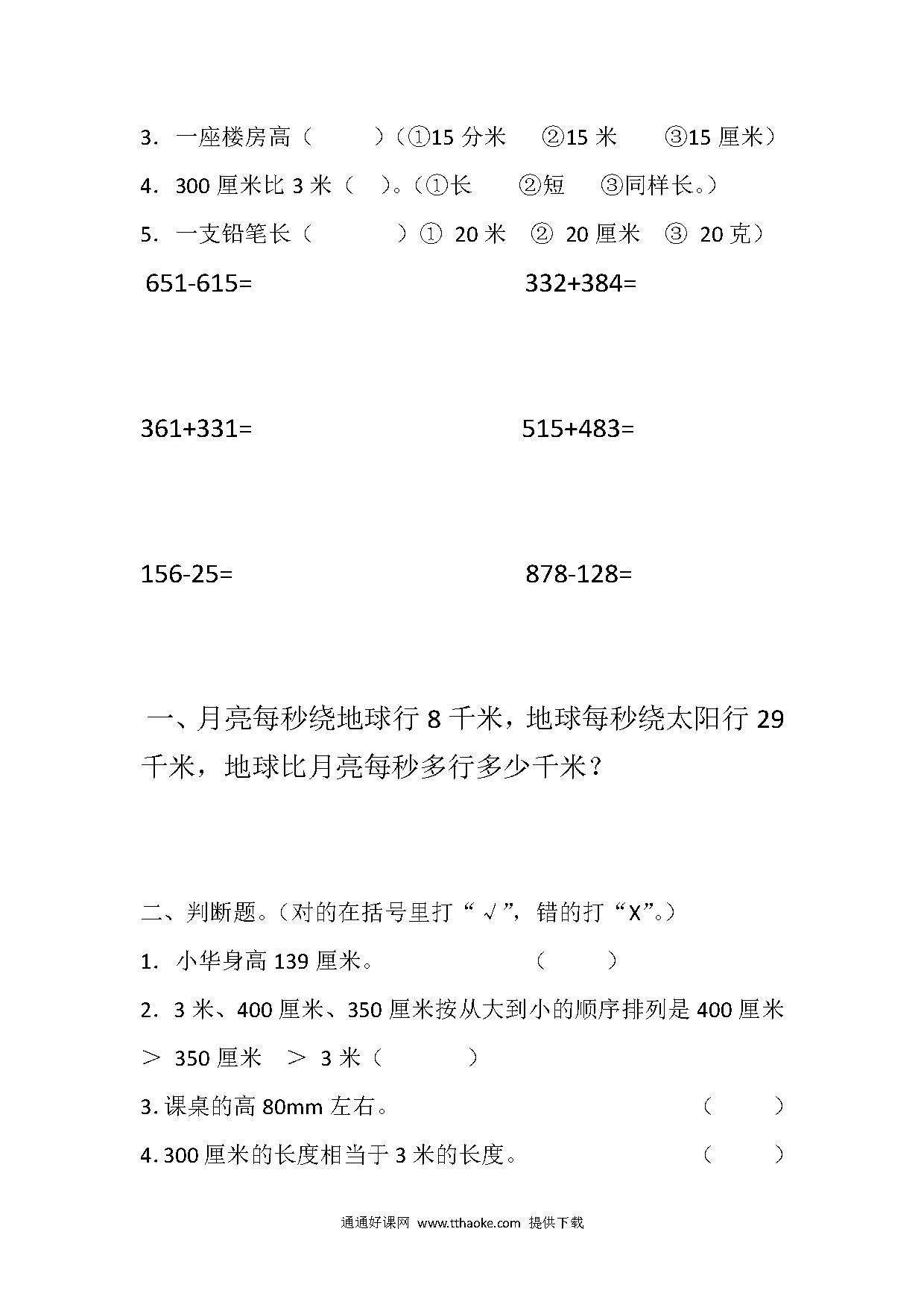2024人教版二年级数学下册期末考试卷免费下载打印(附答案)