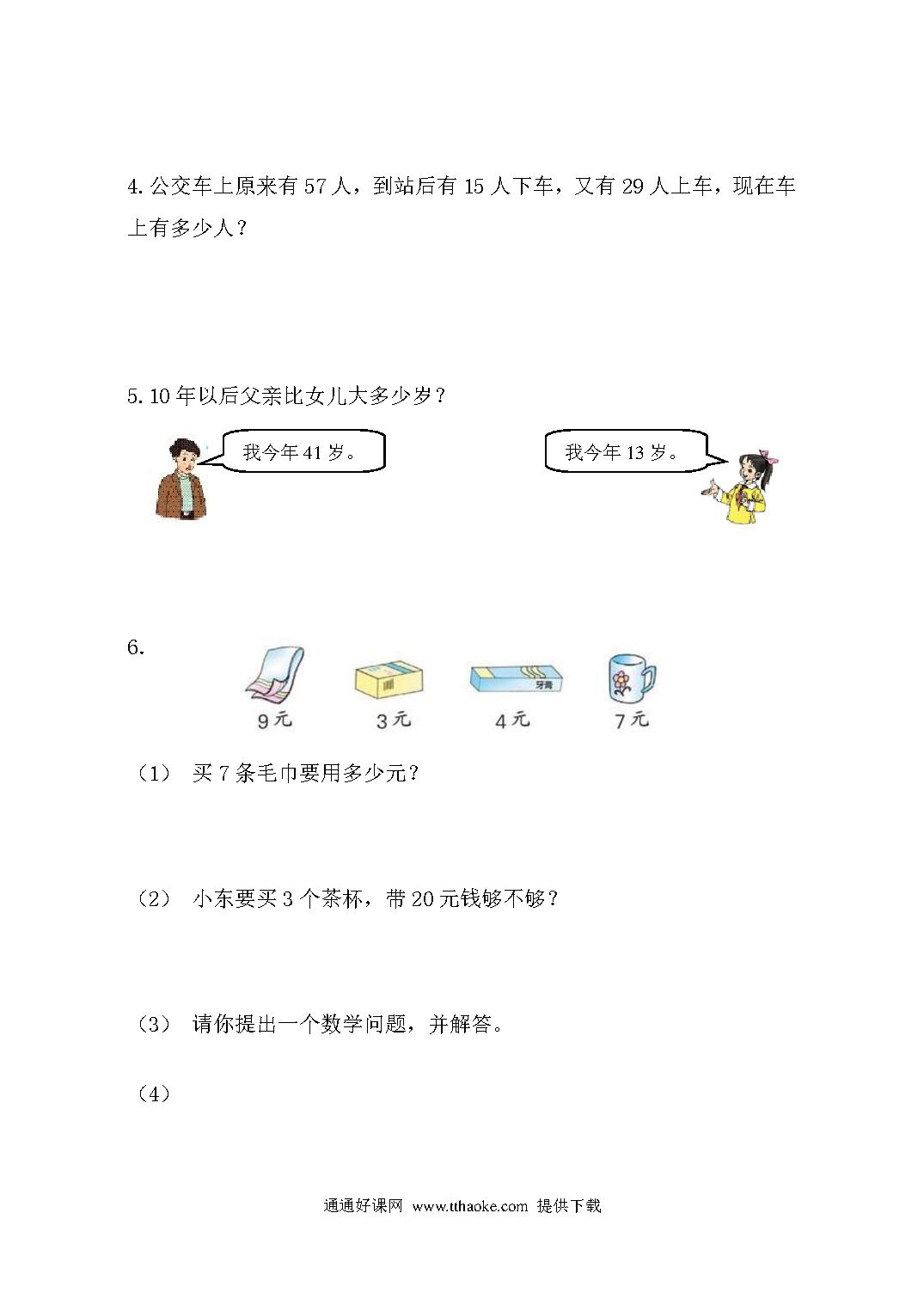 2024人教版二年级数学下册期末考试卷免费下载打印(附答案)