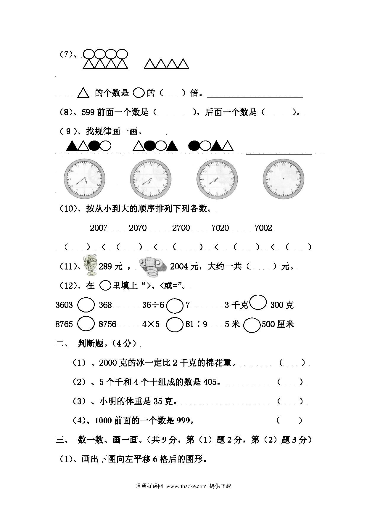 2024人教版二年级数学下册期末考试卷免费下载打印(附答案)