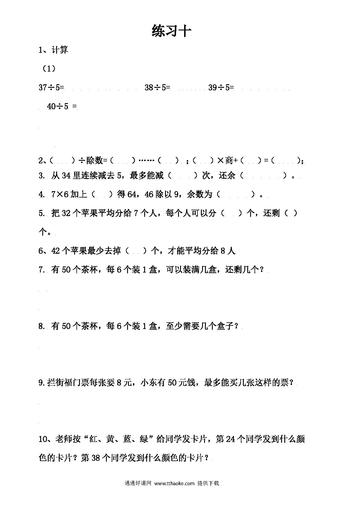 2024学年人教版二年级数学下册期末冲刺卷免费打印下载(附答案)