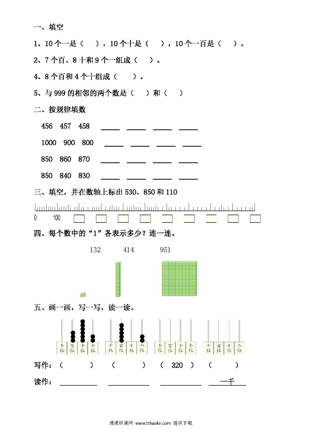 2022年人教版二年级数学上册第一单元测试题附答案(可下载打印)