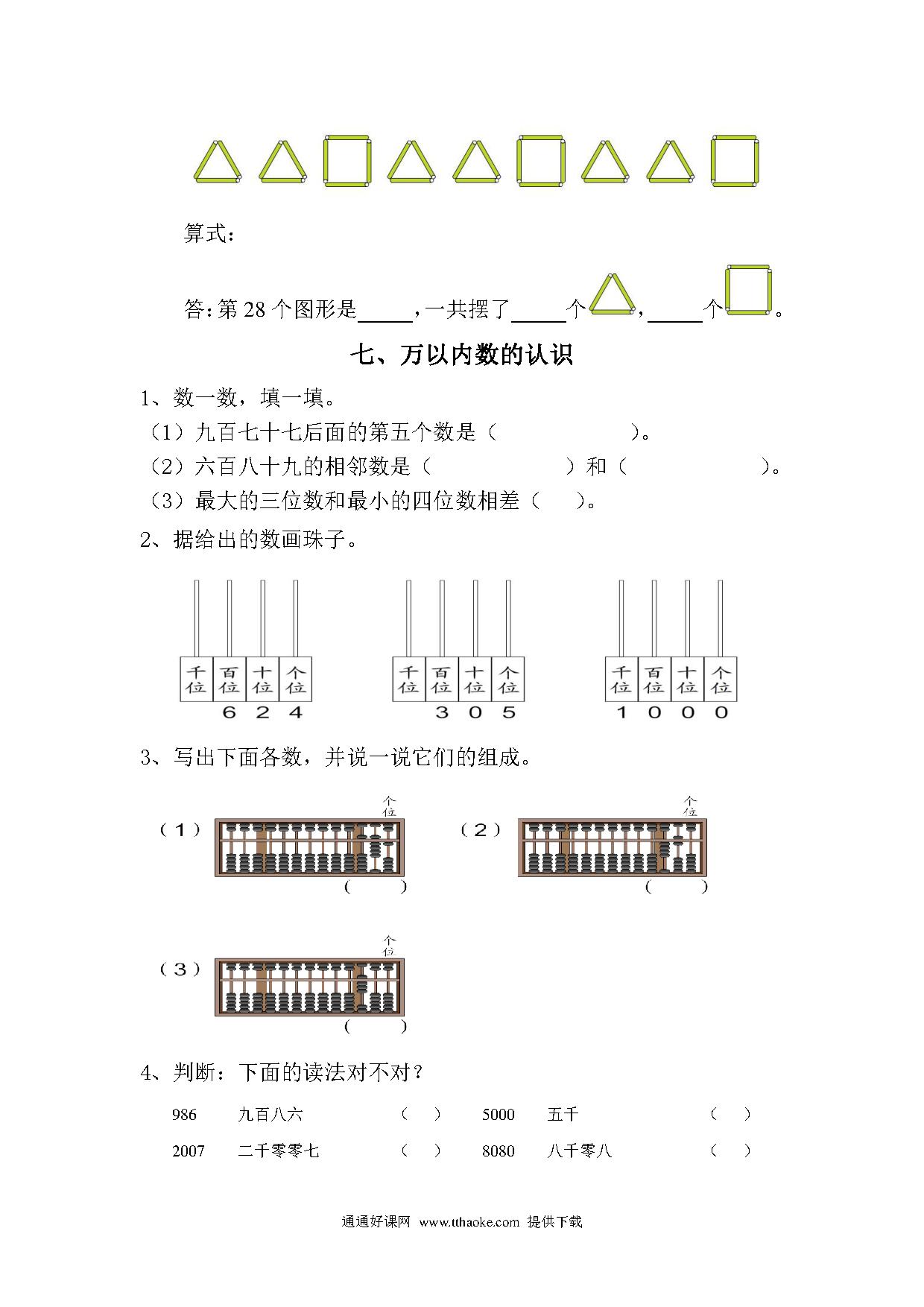2024人教版二年级数学下册期末考试卷免费下载打印(附答案)