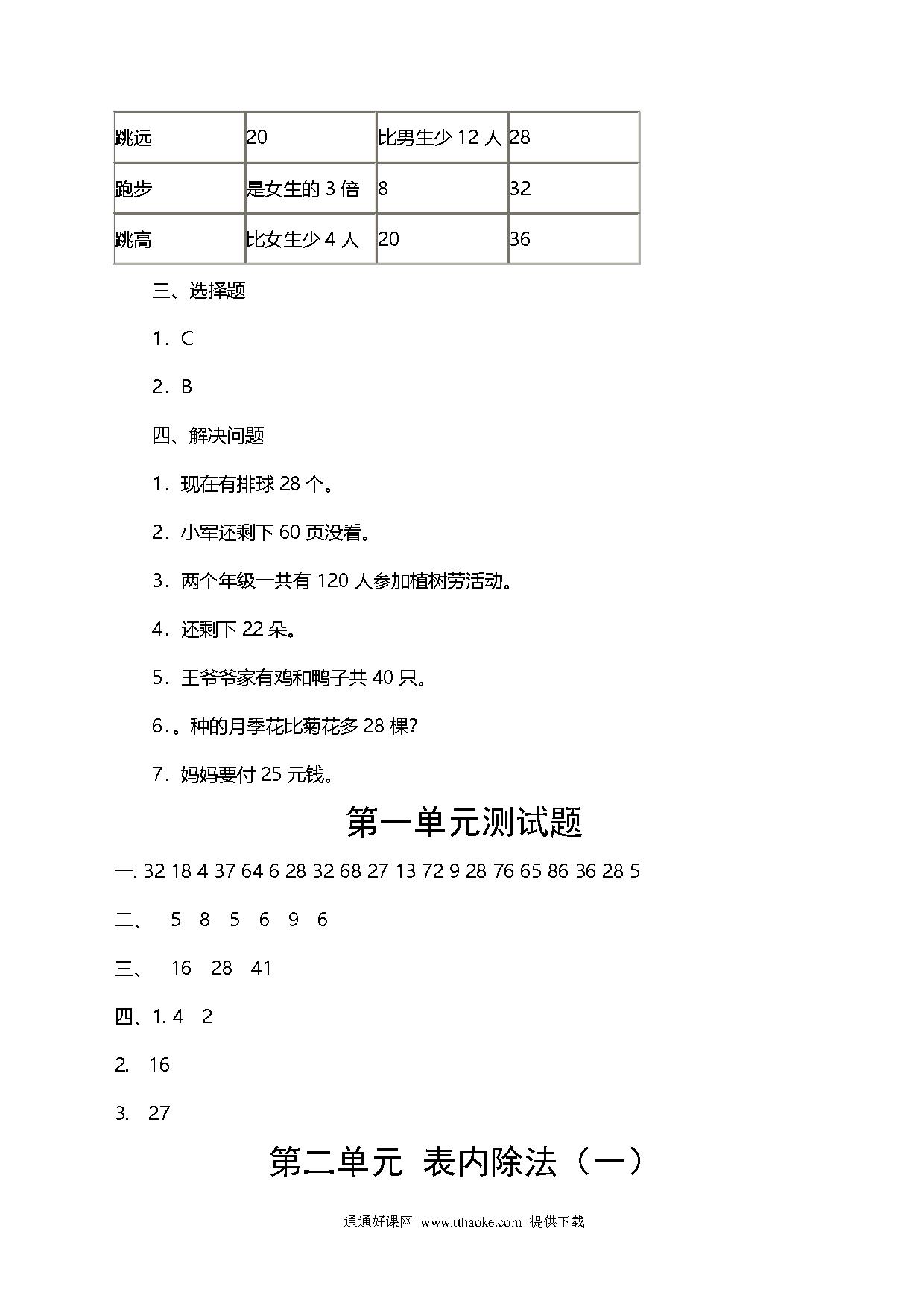 二年级数学下册同步练习题及答案ABC卷1-4单元