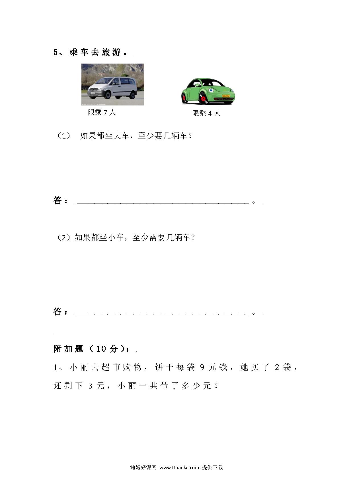 2024人教版二年级数学下册期末考试卷免费下载打印(附答案)