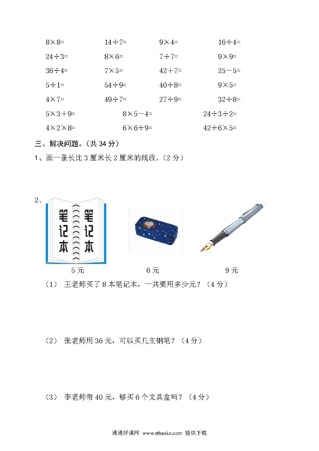 2024学年人教版二年级数学下册期末冲刺卷免费打印下载(附答案)