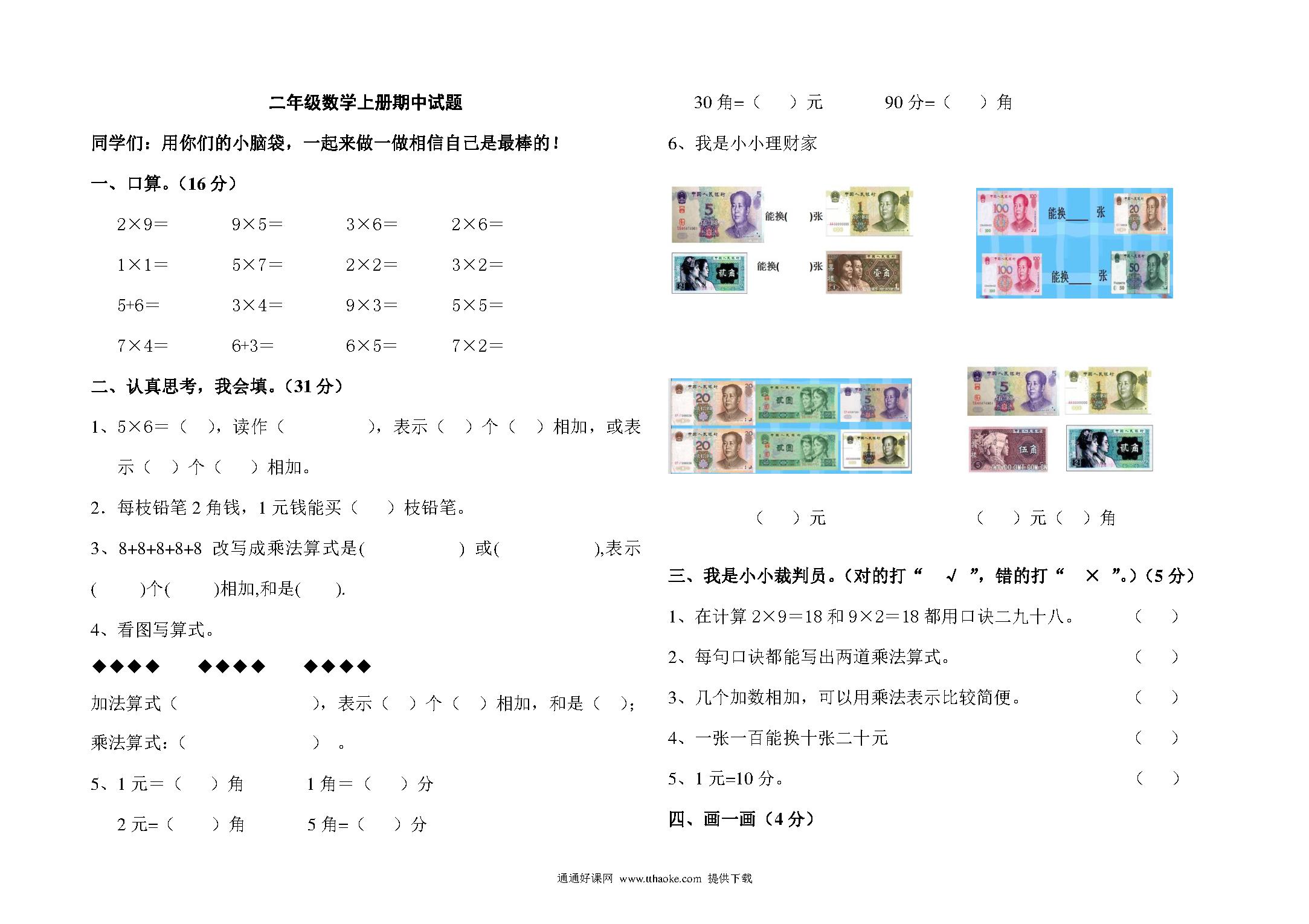 2024学年人教版二年级数学下册期末冲刺卷免费打印下载(附答案)