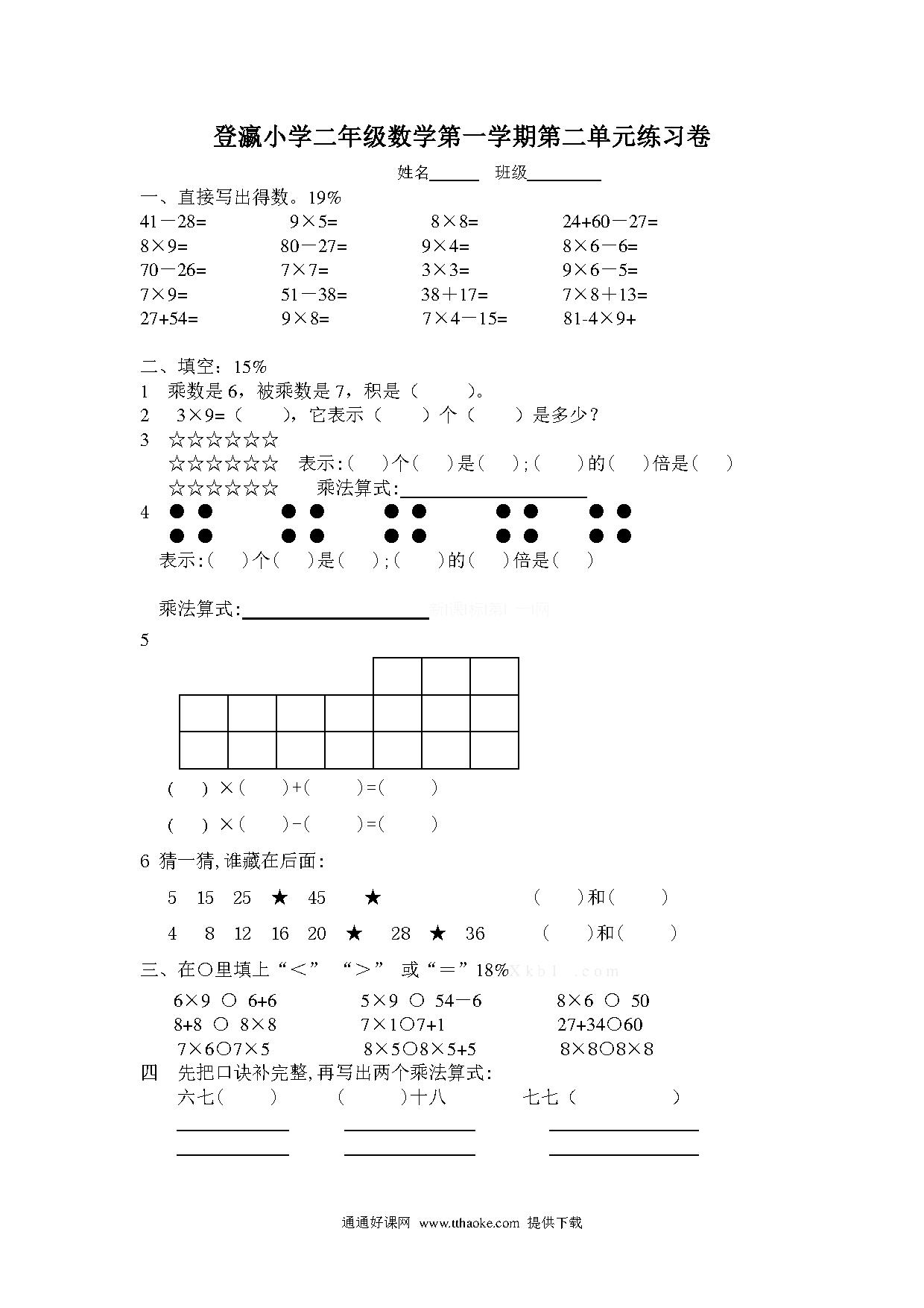 登瀛小学二年级数学上册第二单元练习卷.pdf