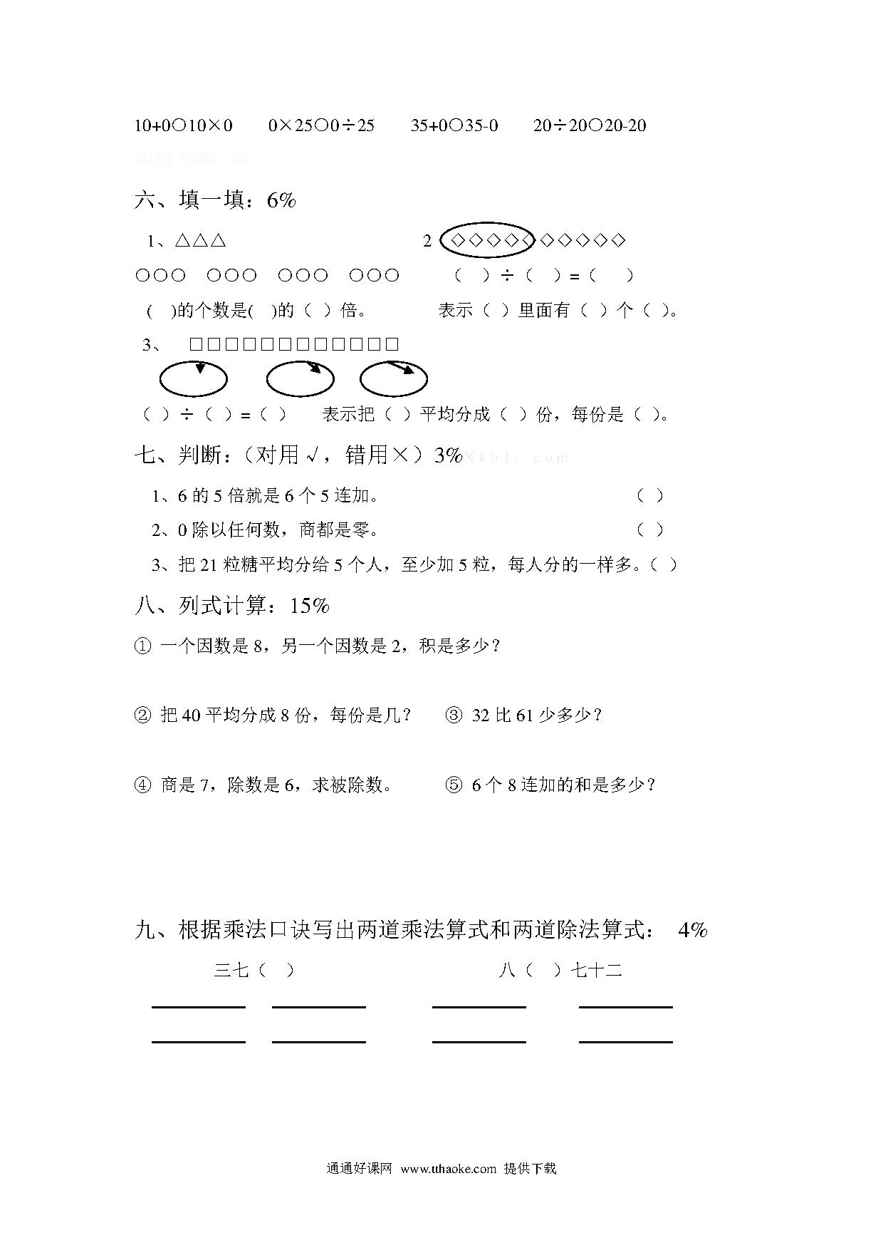 2024人教版二年级数学下册期末考试卷免费下载打印(附答案)