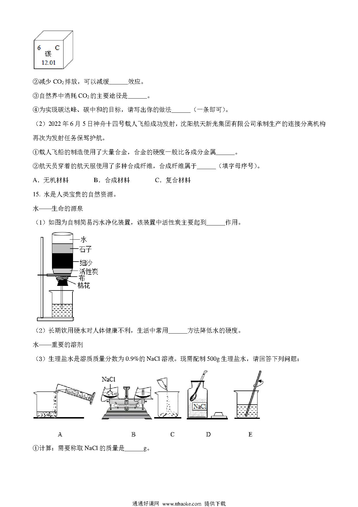 2022年辽宁省沈阳市中考化学真题(原卷版).pdf