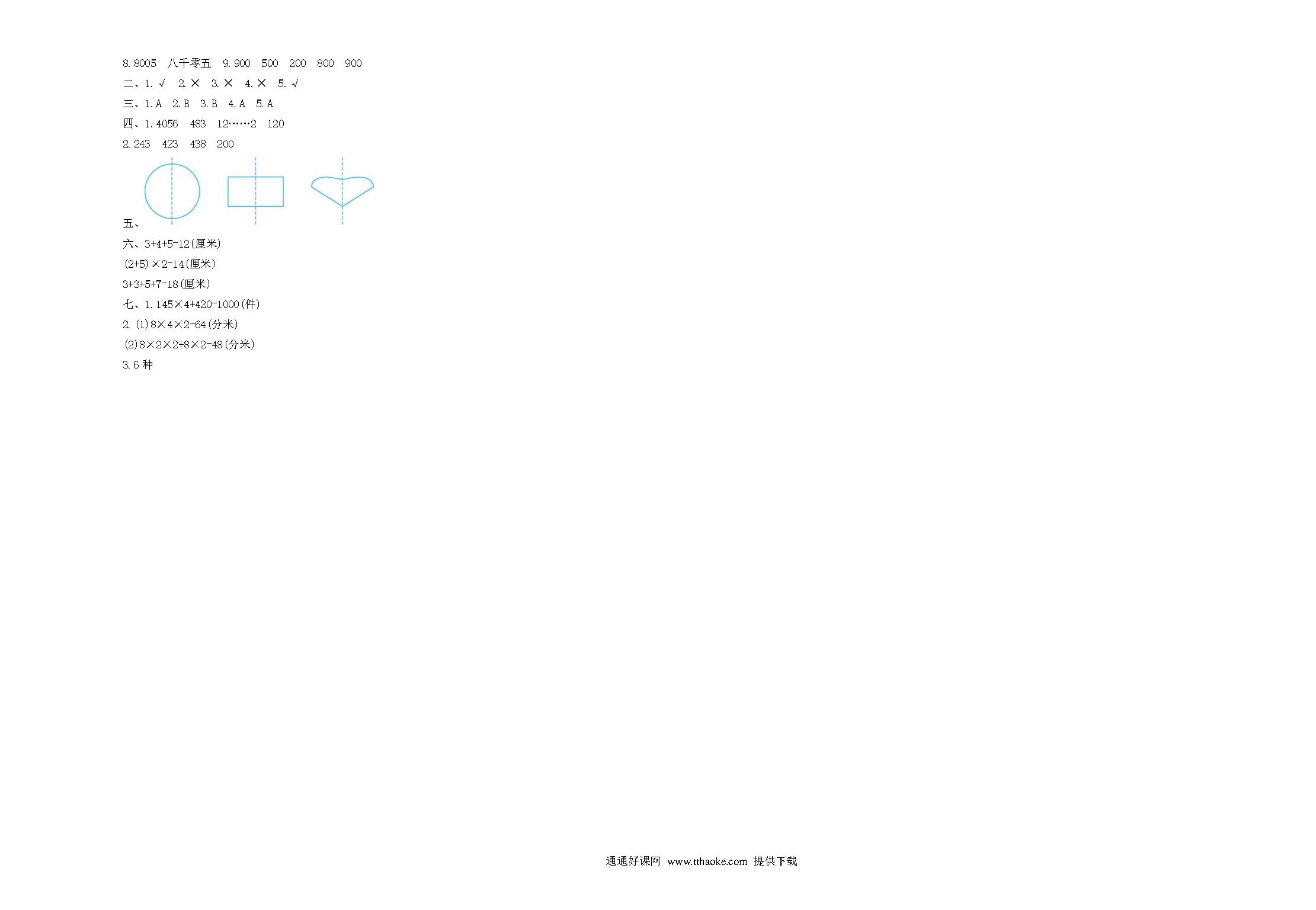 2022-2023学年人教版三年级数学上册期末测试卷可下载打印(附答案)