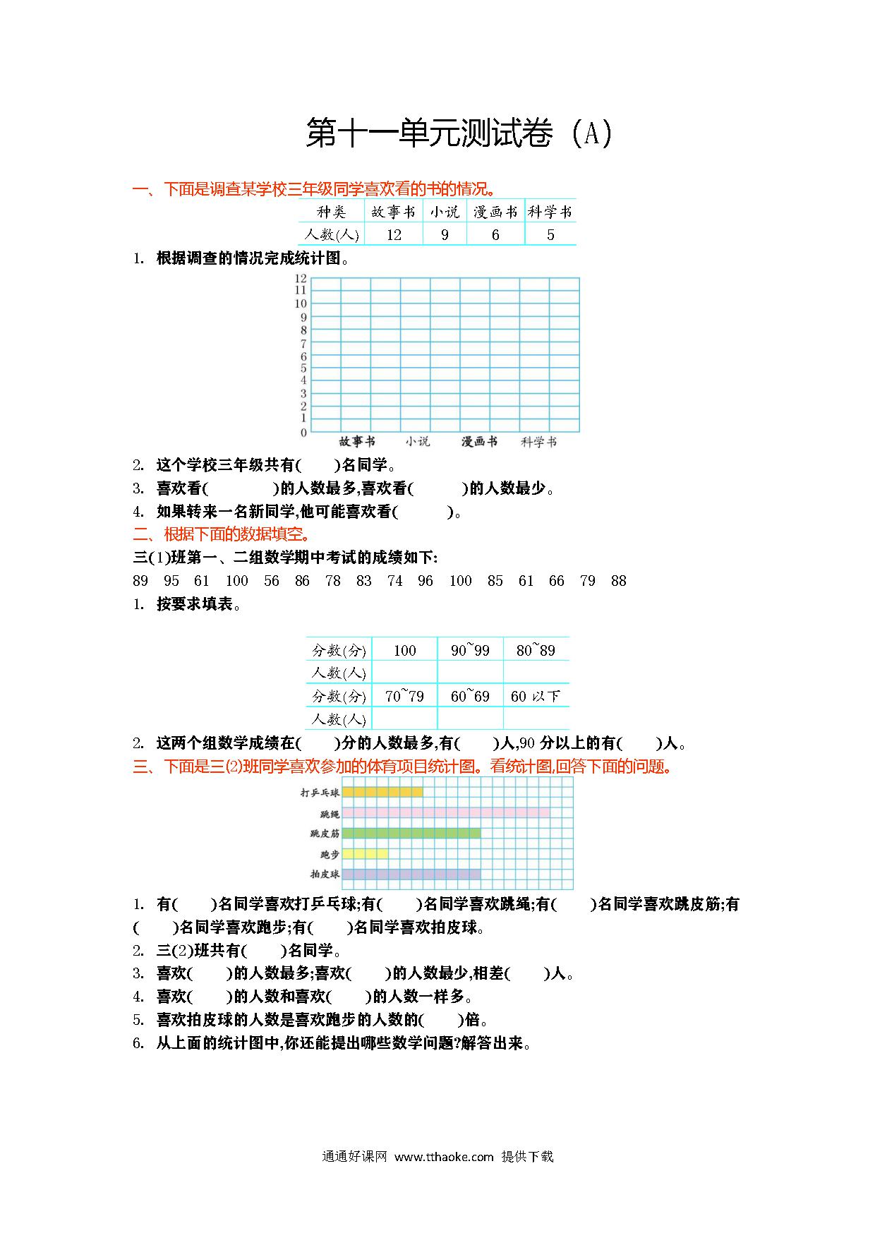 人教版2022-2023三年级数学上册第五单元测试卷可下载(附答案)