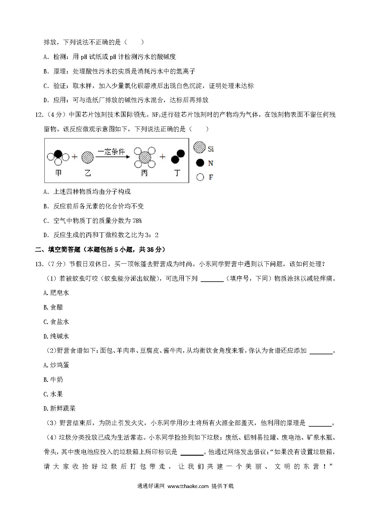 贵州省安顺市2019年中考化学真题试题(含解析)