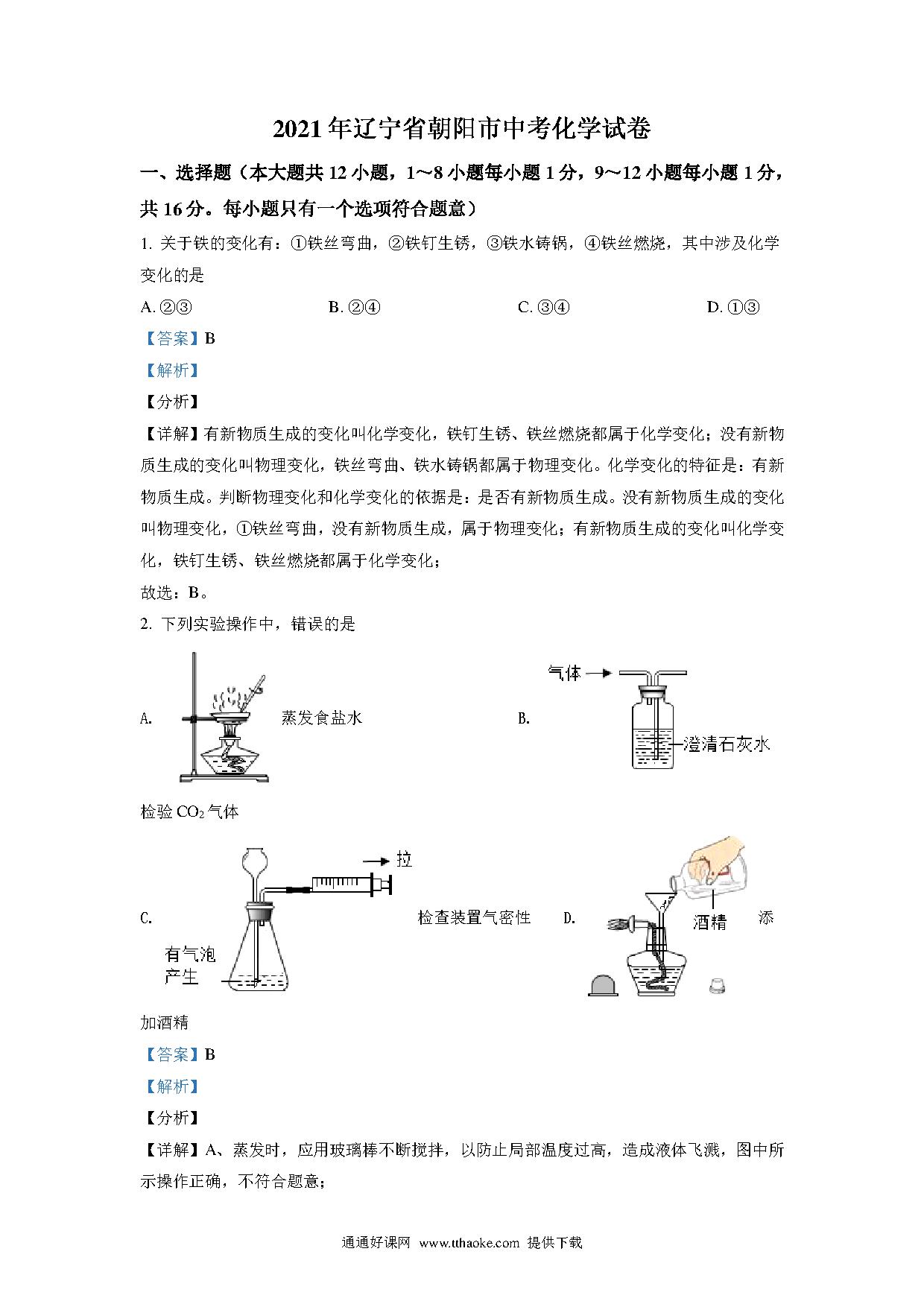 辽宁省朝阳市2021年中考化学试题(解析版).pdf