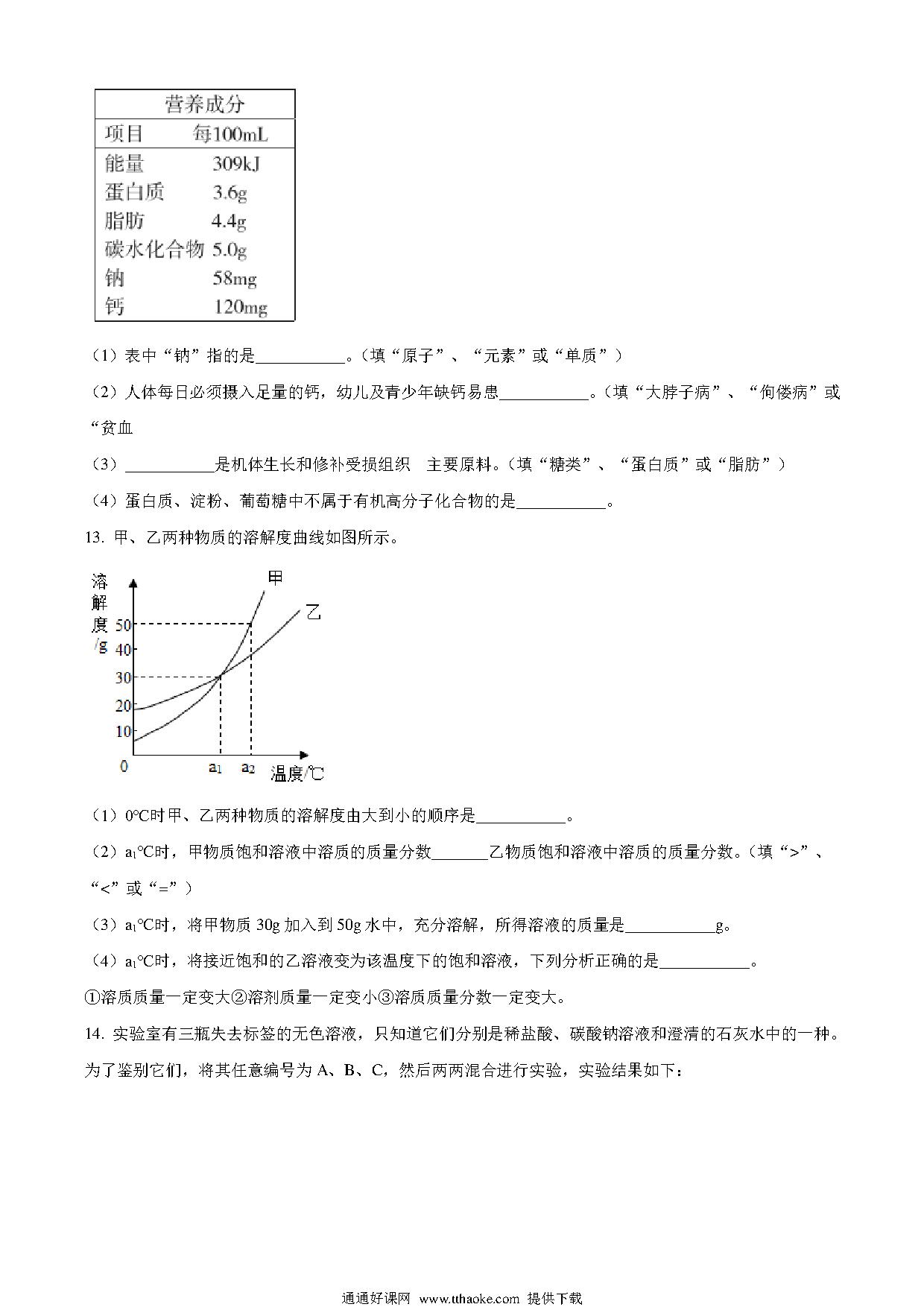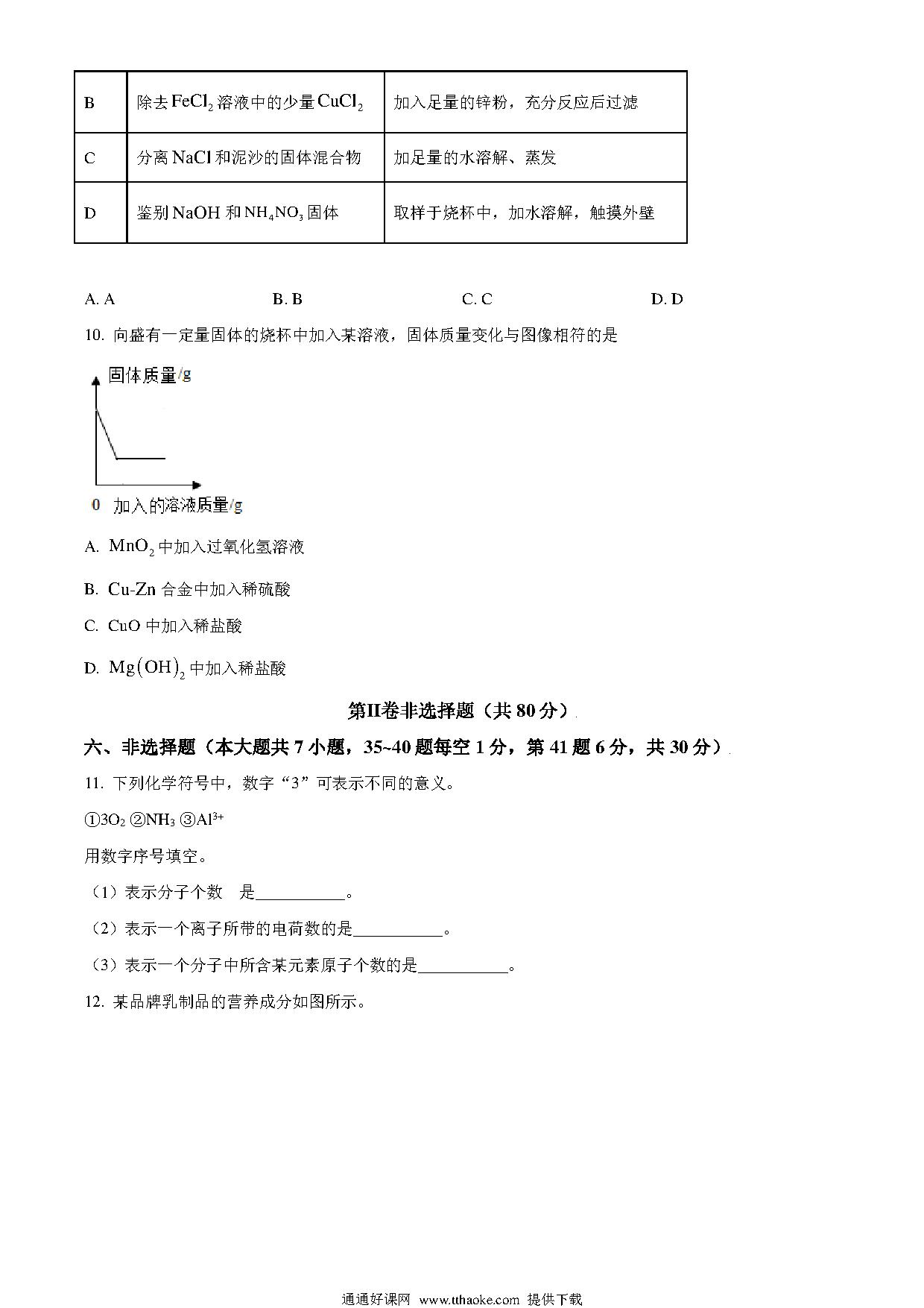 贵州省毕节市2019年中考化学真题试题(无答案)