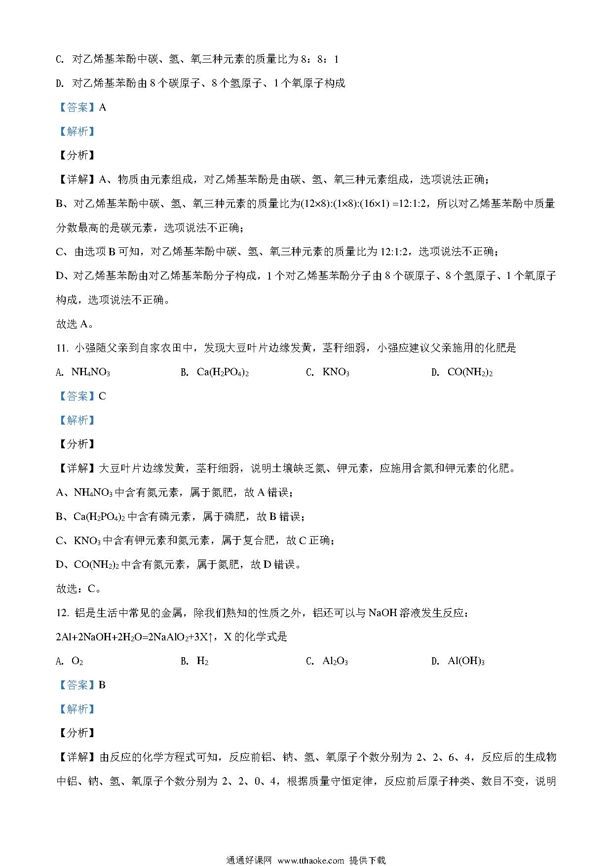 黑龙江省伊春市2021年中考化学试题(解析版)
