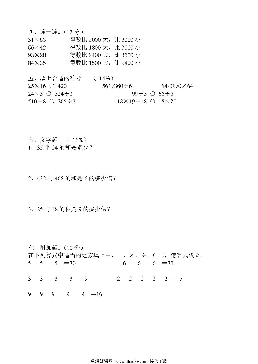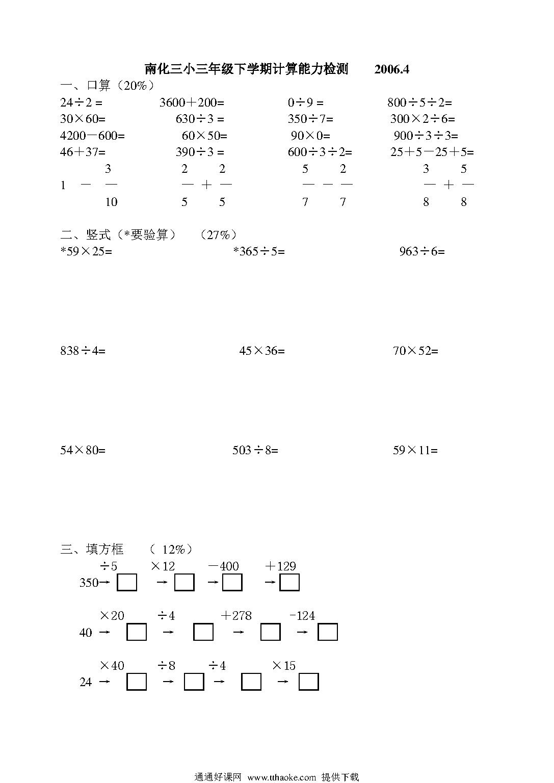 三年级下册计算能力比赛【新课标人教版】