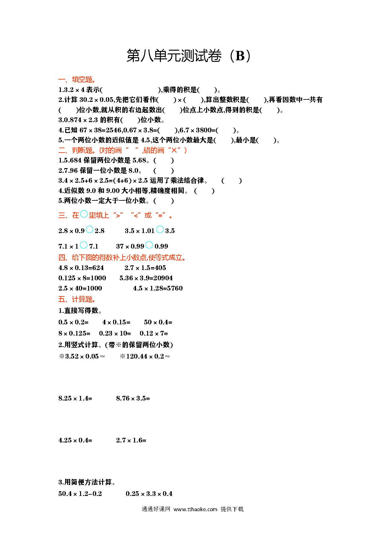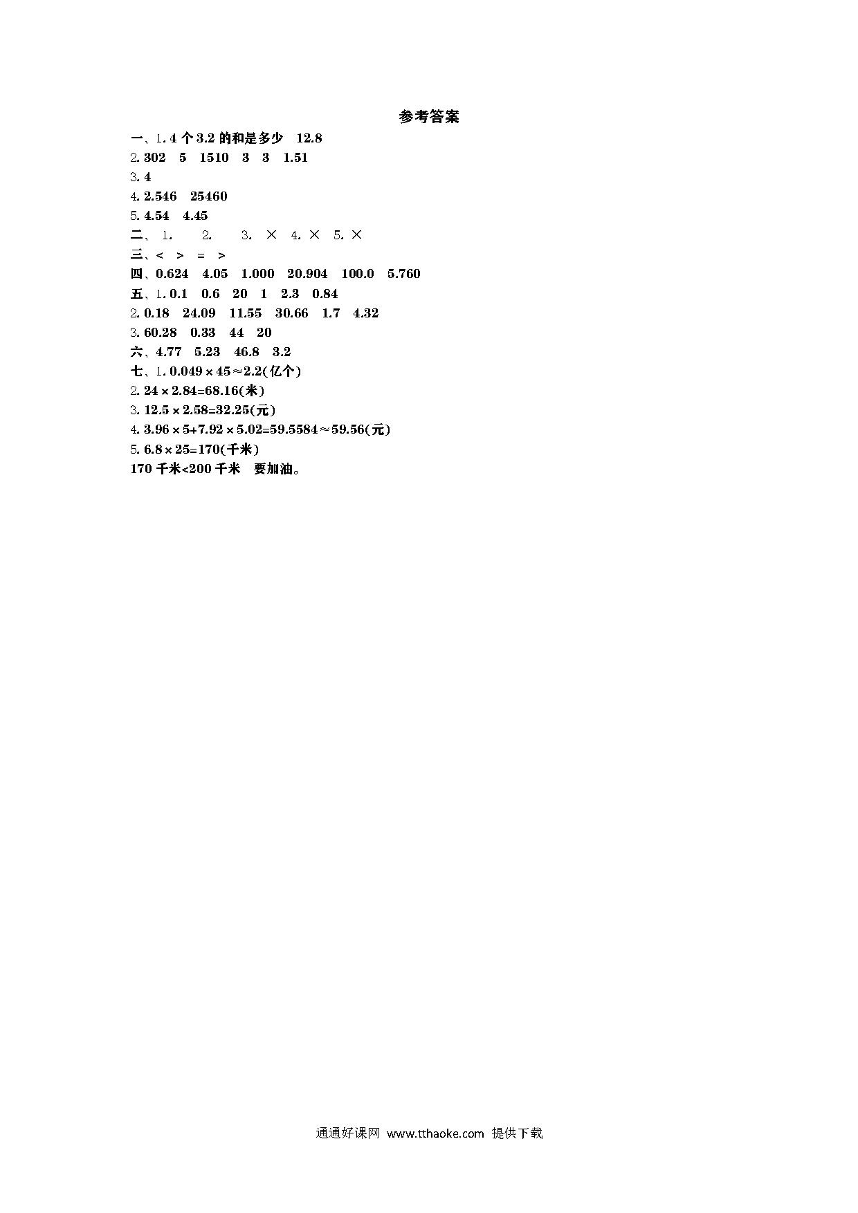 2023年人教版四年级数学下册第五单元测试卷可下载打印(附答案)