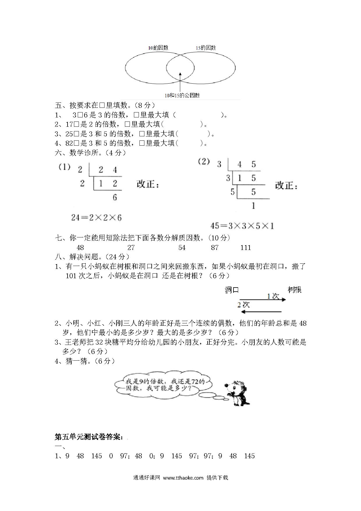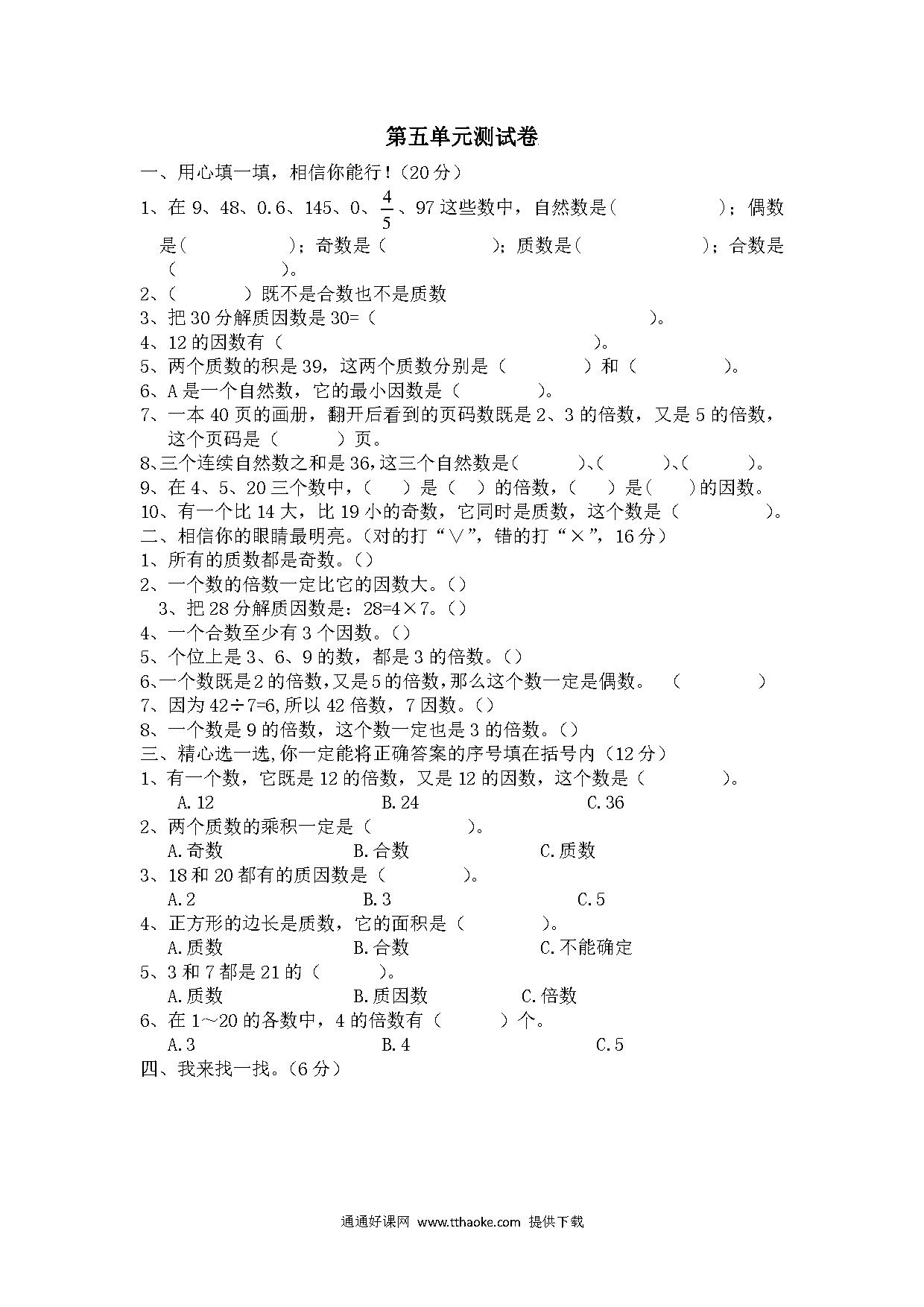 2023年人教版四年级数学下册第五单元测试卷可下载打印(附答案)