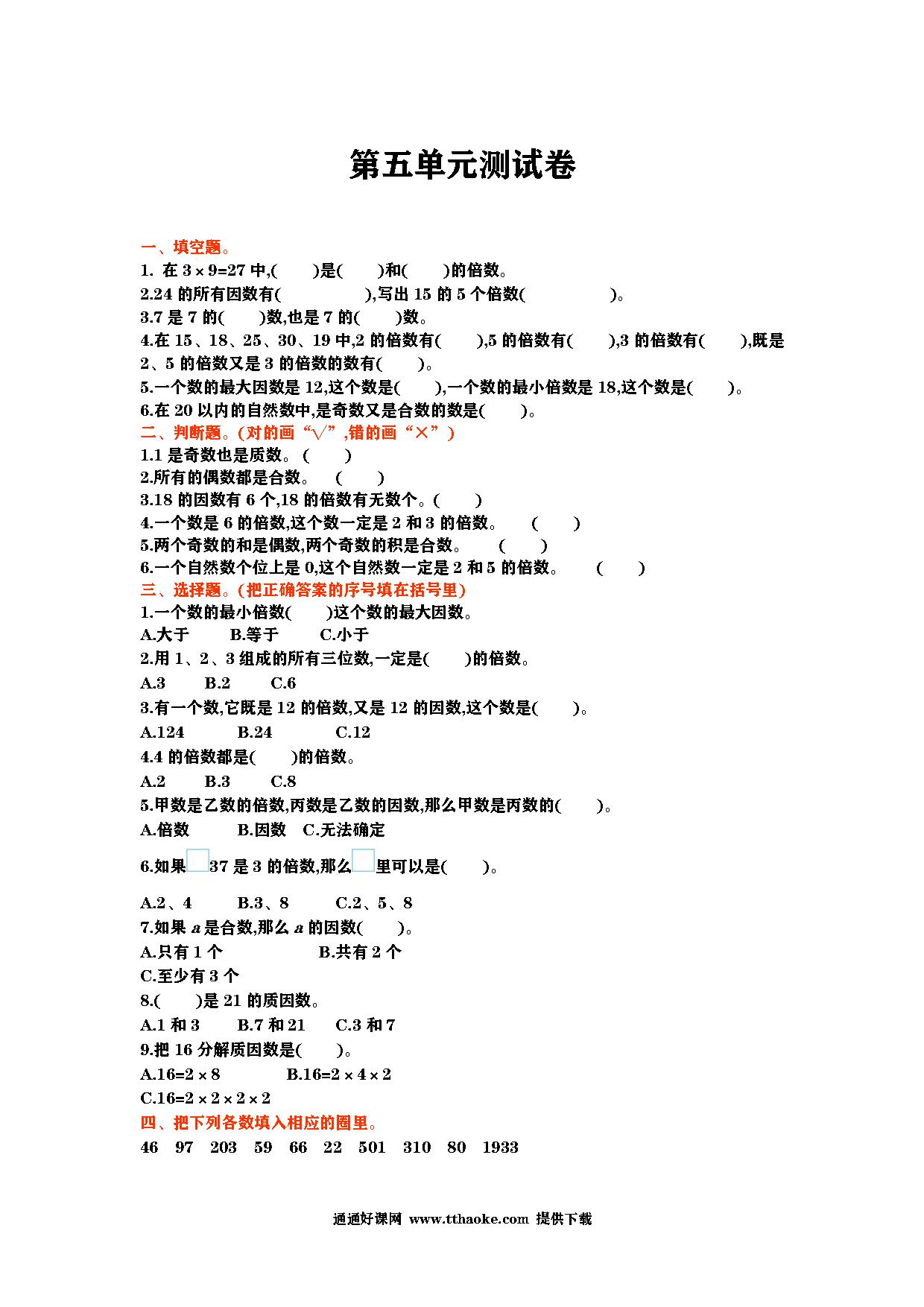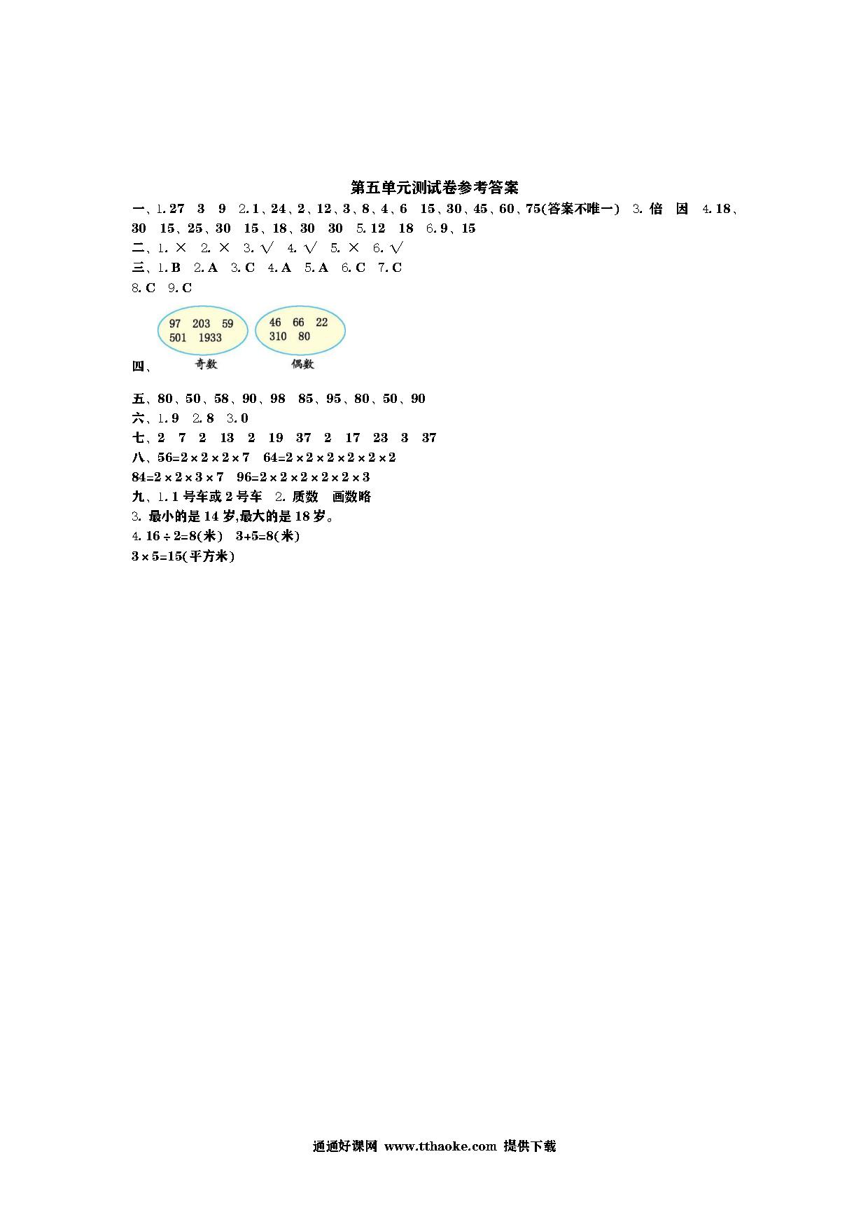 2023年人教版四年级数学下册第五单元测试卷可下载打印(附答案)