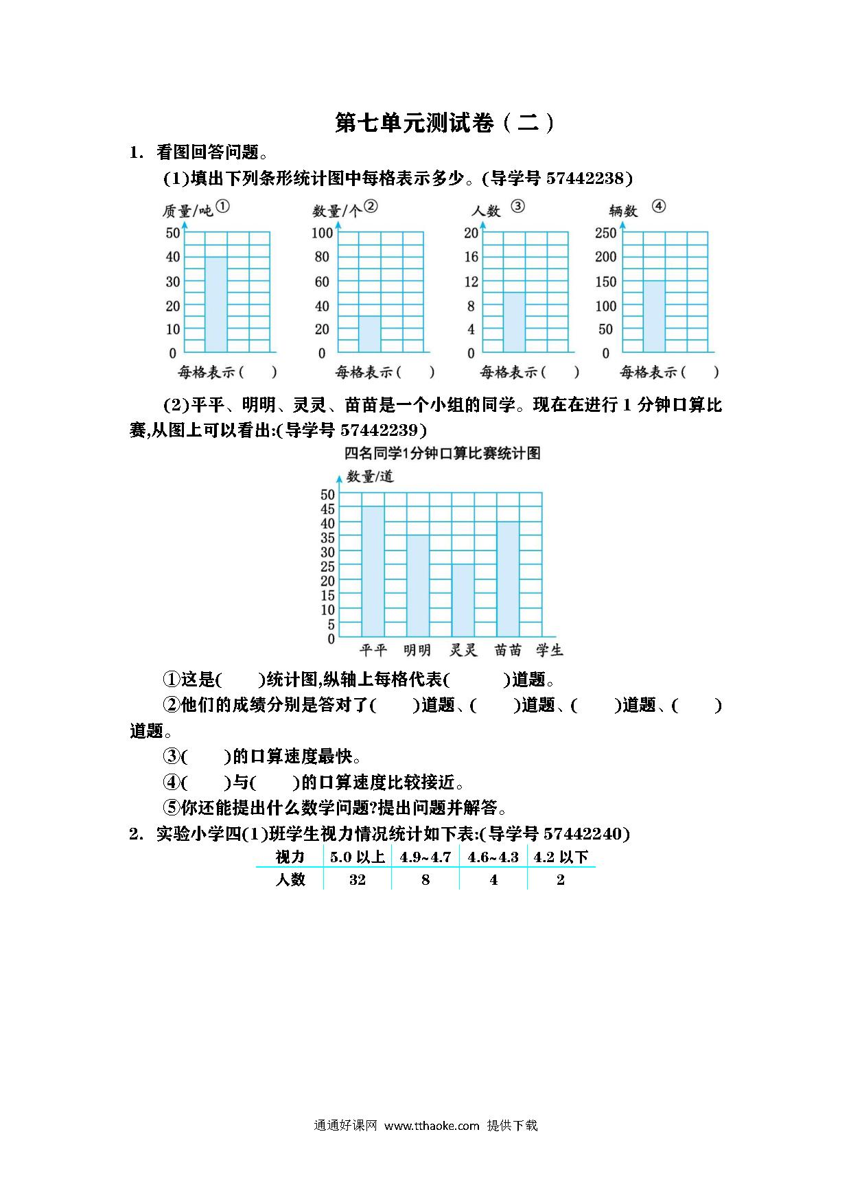 2021年四年级数学上册第七单元测试题及答案二【人教版】