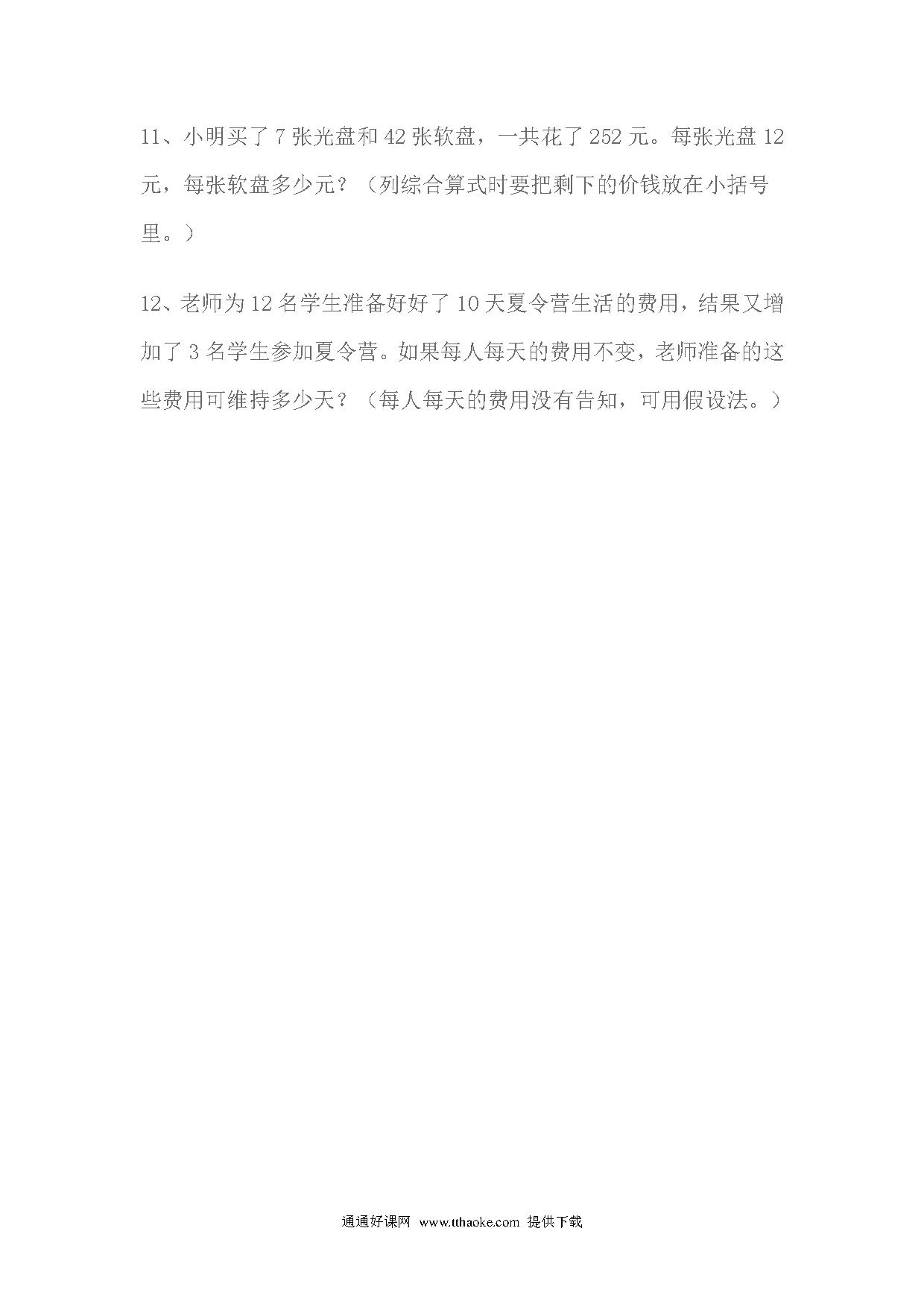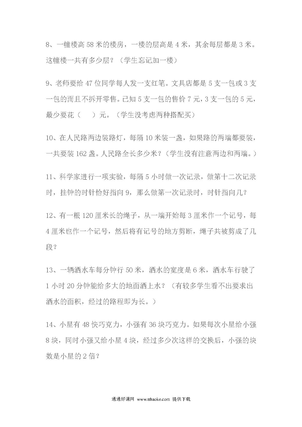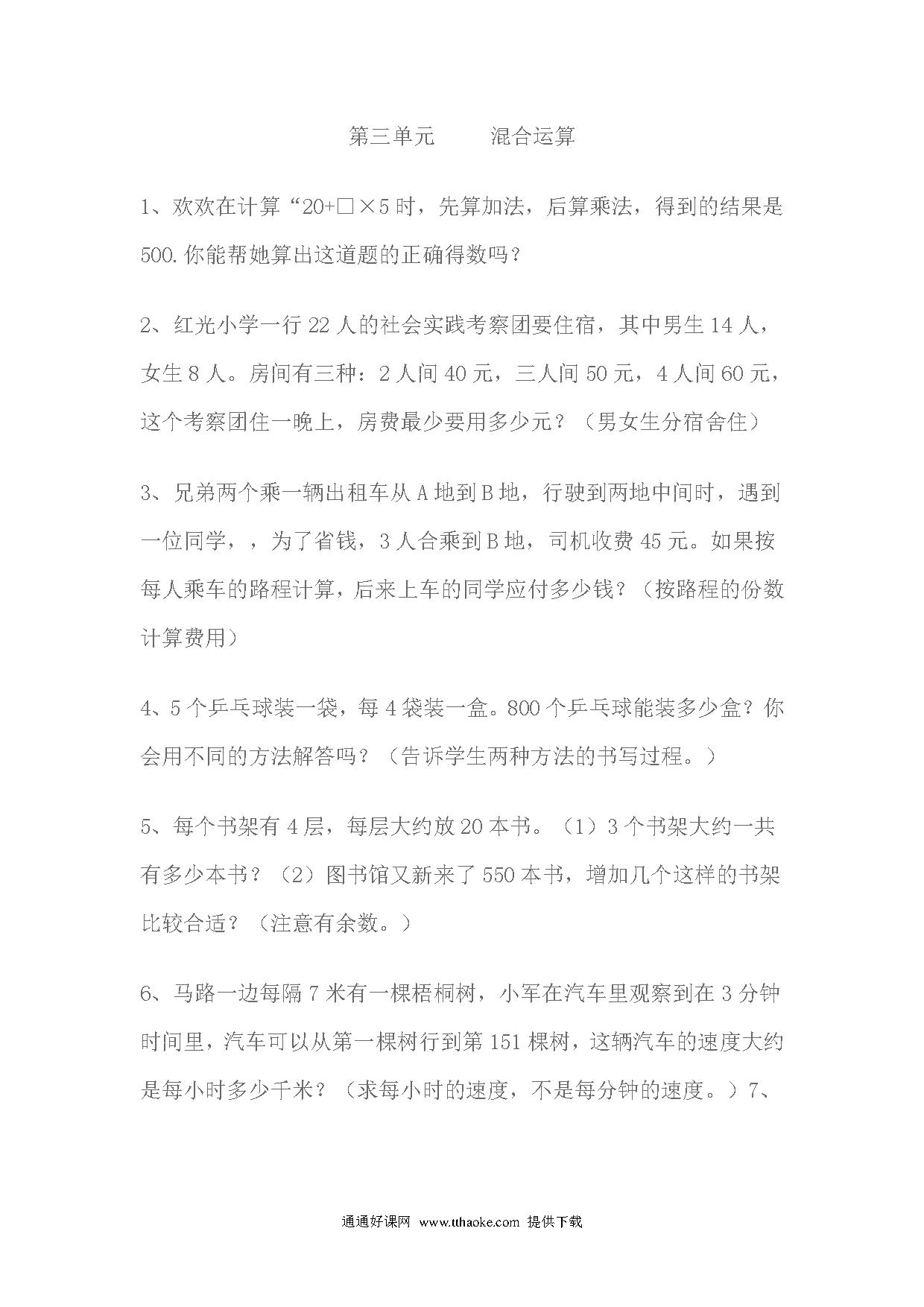 苏教版2023年四年级数学下册《常考解答题》强化测试卷免费下载打印(附答案)