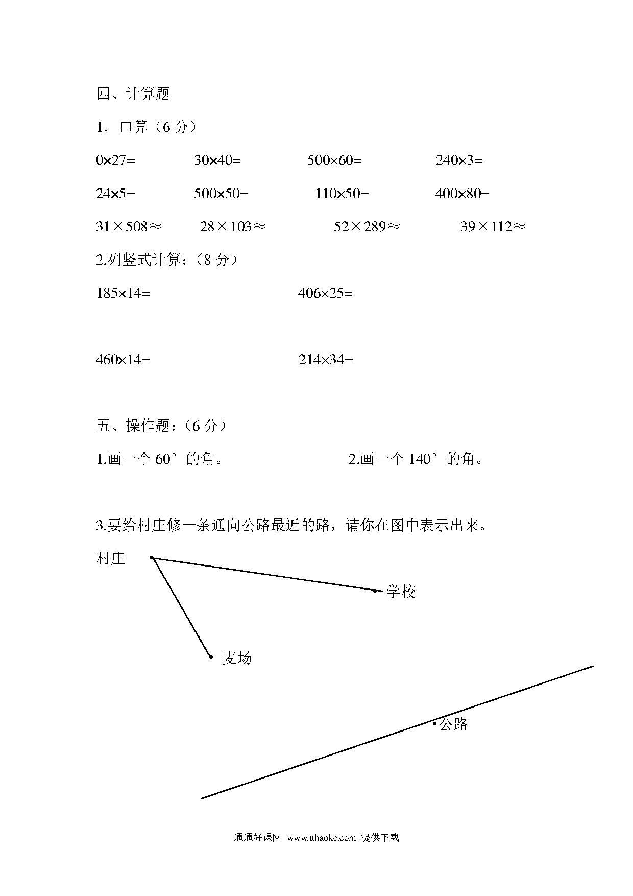 2023人教版四年级数学下册期中测试卷可下载打印(附答案)