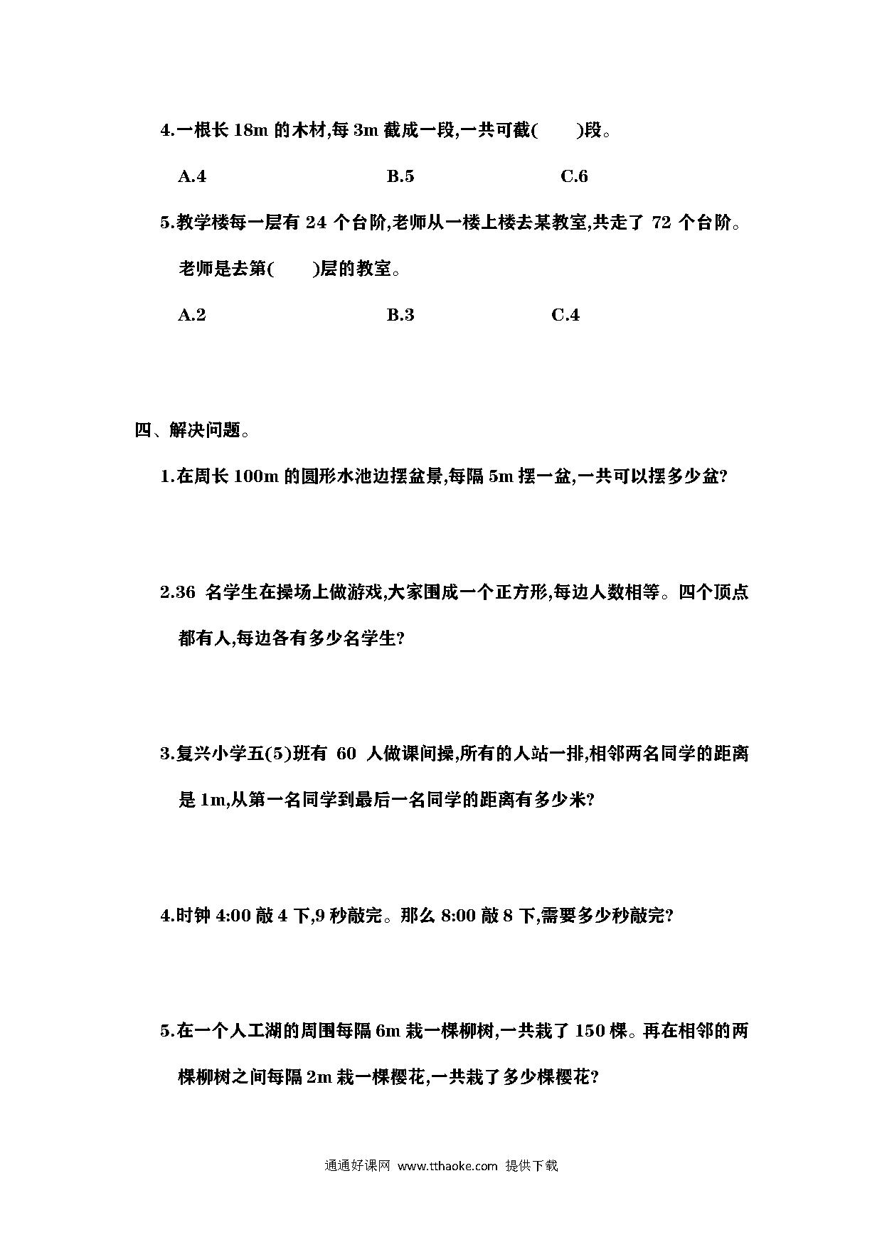 人教版2022-2023五年级数学上册第五单元测试卷可下载(附答案)