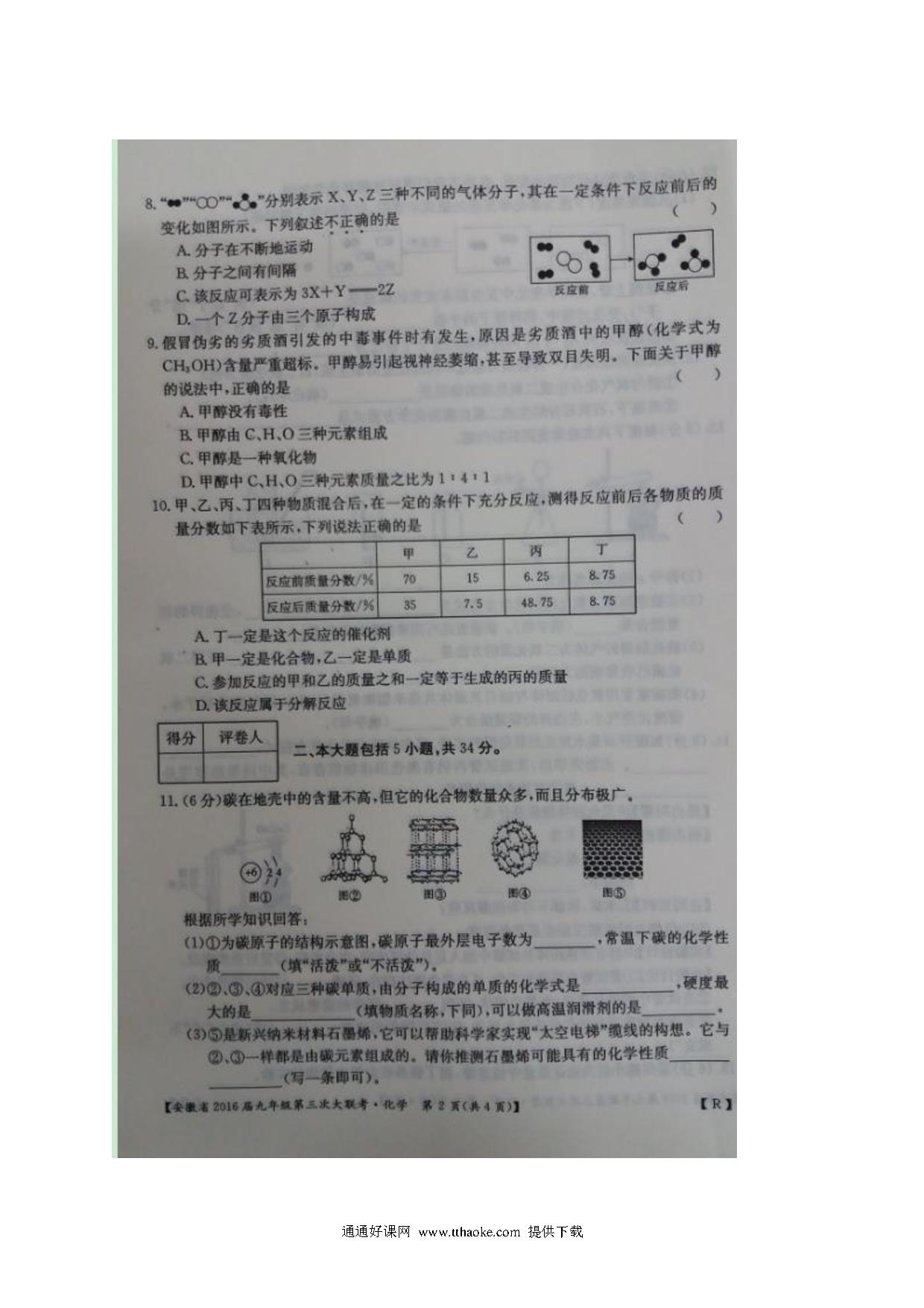 安徽省2016九年级第三次联考化学试卷及答案(图片版).pdf