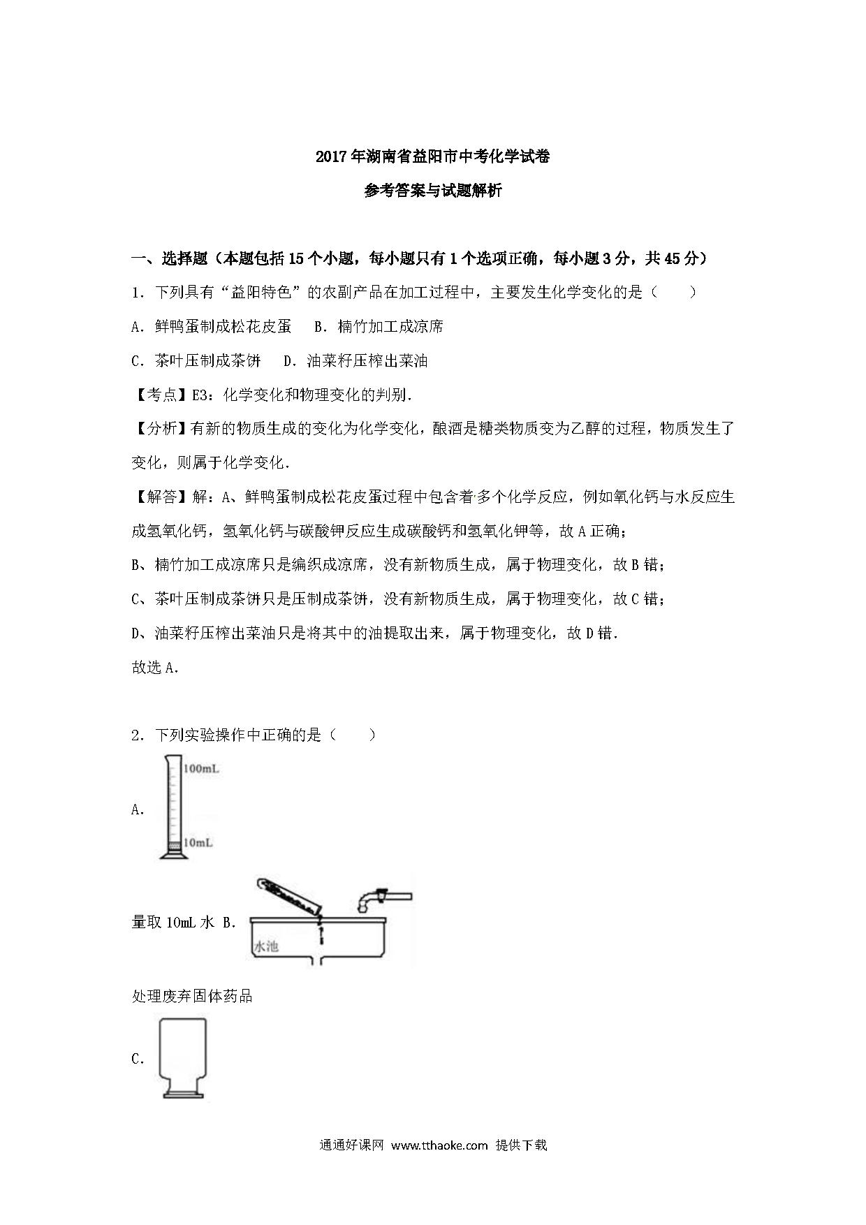 湖南省益阳市2017年中考化学真题试题(含解析).pdf