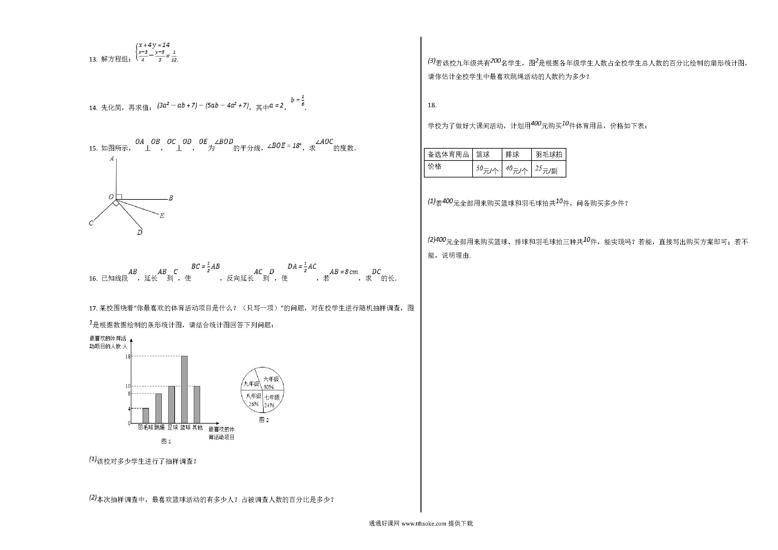 淮北市2019年第一学期七年级数学期末试卷及答案