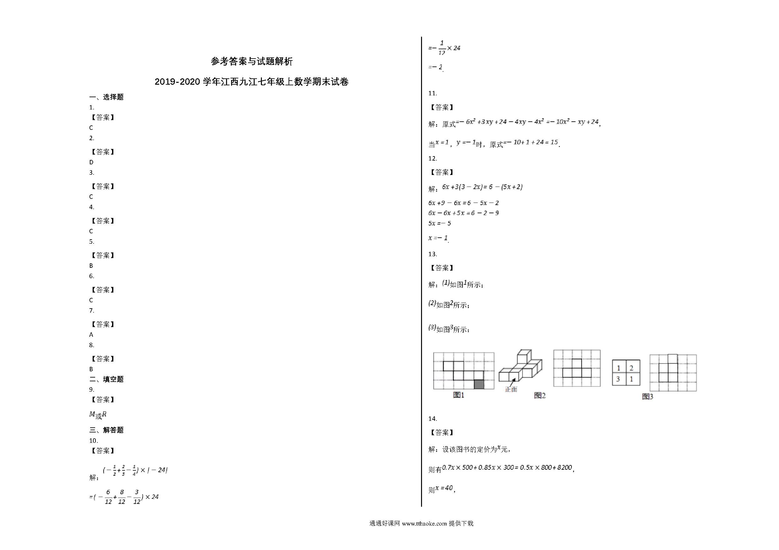 2019-2020学年江西九江七年级上数学期末试卷及答案.pdf