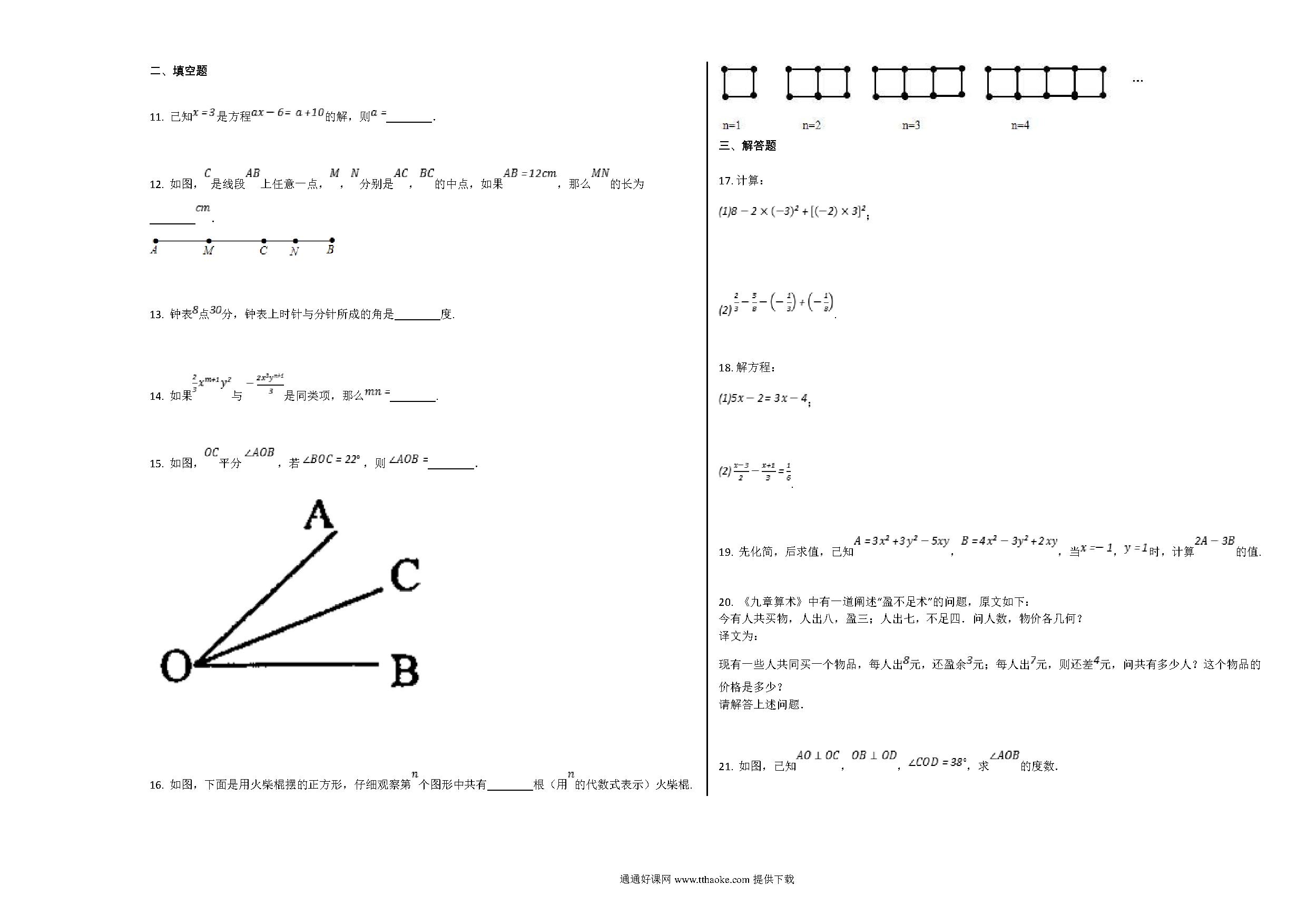 淮北市2019年第一学期七年级数学期末试卷及答案